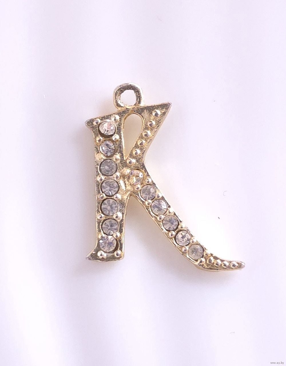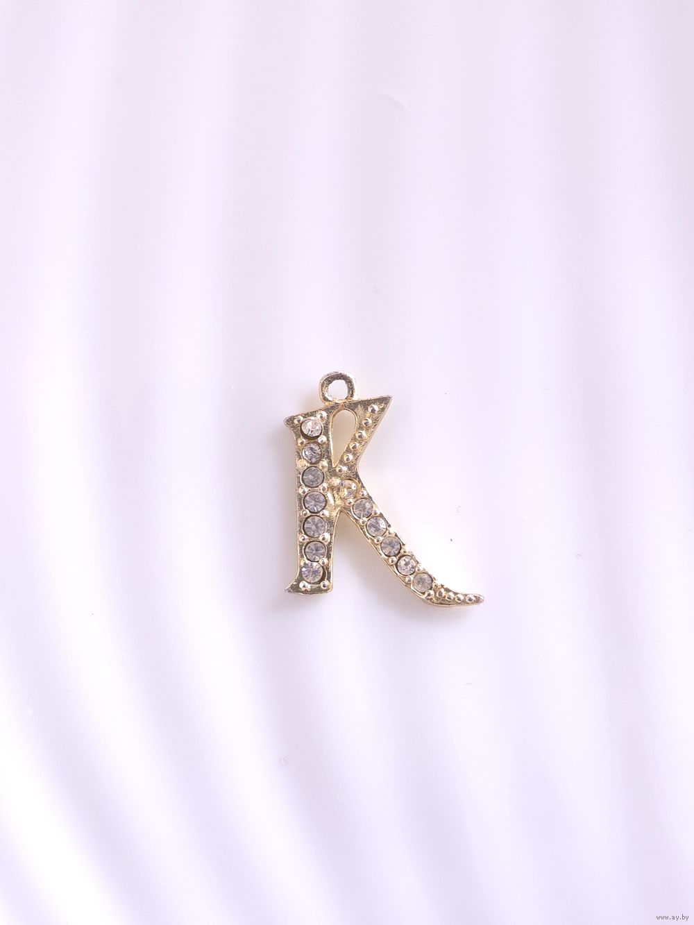 Подвеска-кулон Буква латинская "K" с фианитами, серебро 925