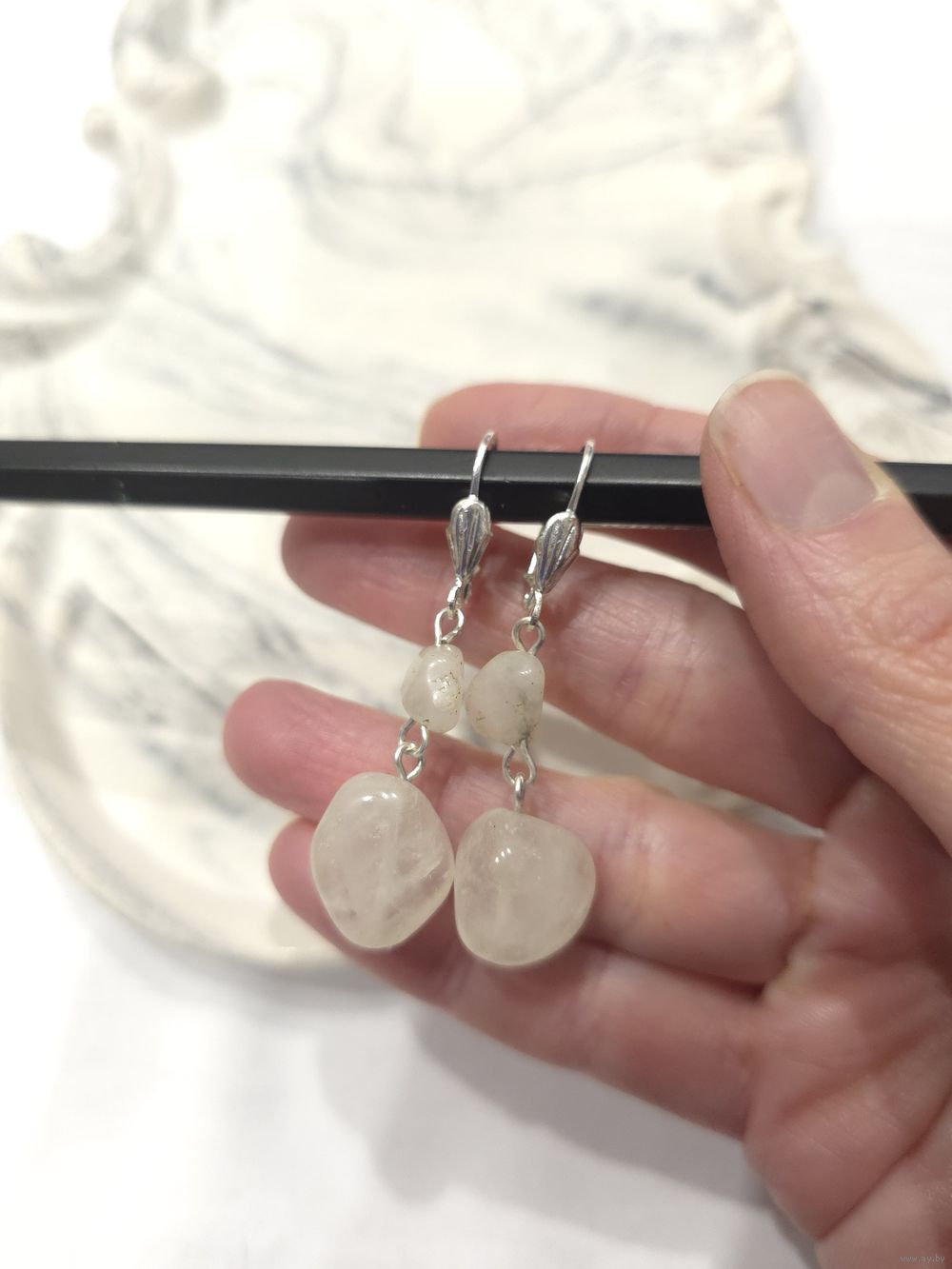Лот С 1 РУБЛЯ! много лотов! Ретро серьги с белым Агатом винтажные, сталь