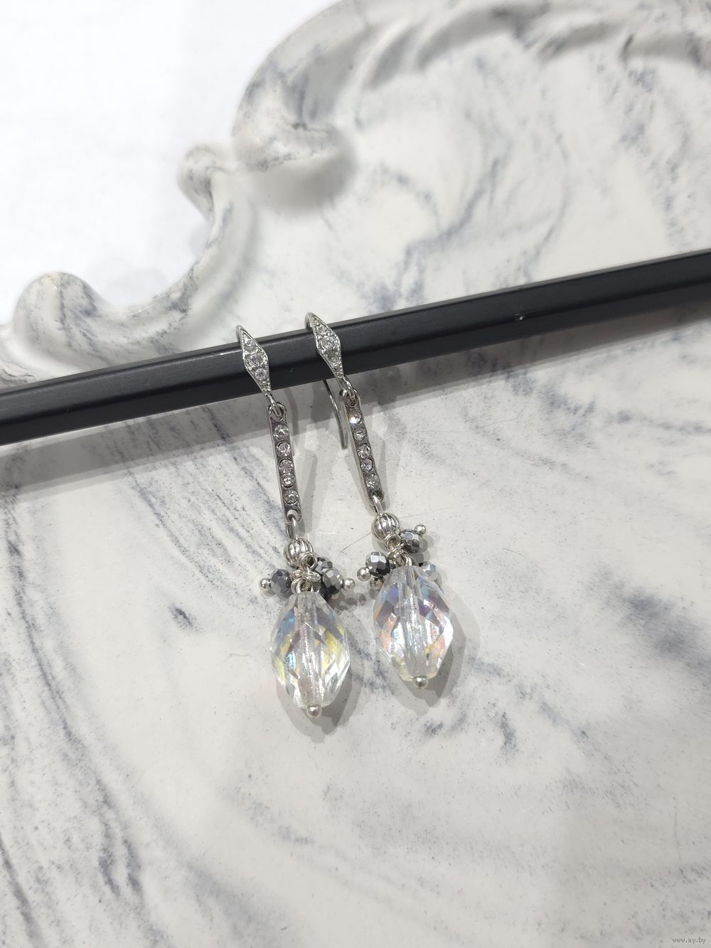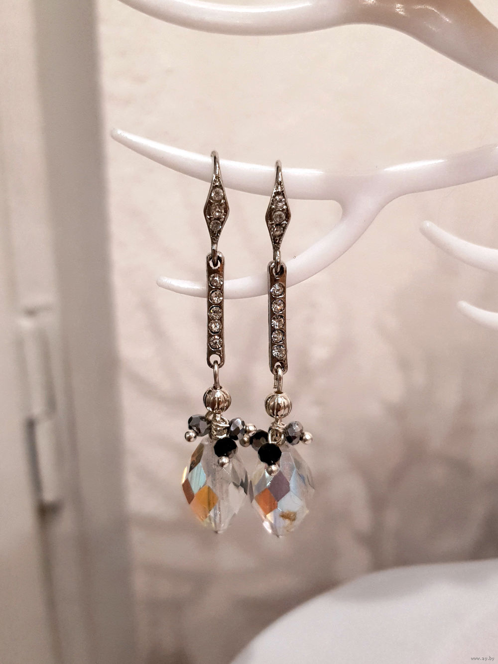 Серьги из бусин Аврора Бореалис, Чехословакия, сталь, фианиты