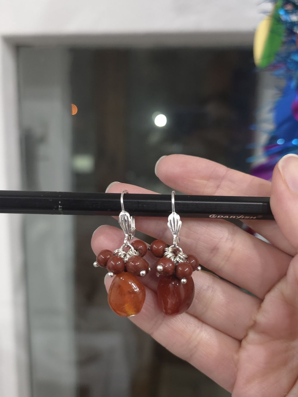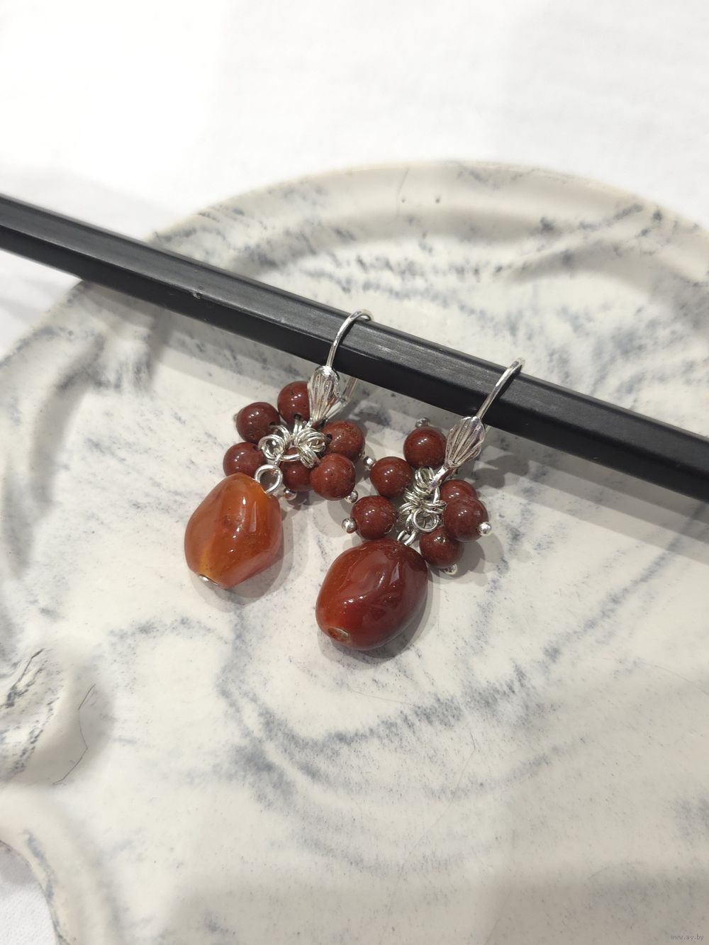 Серьги из натурального агата, длина 5 см