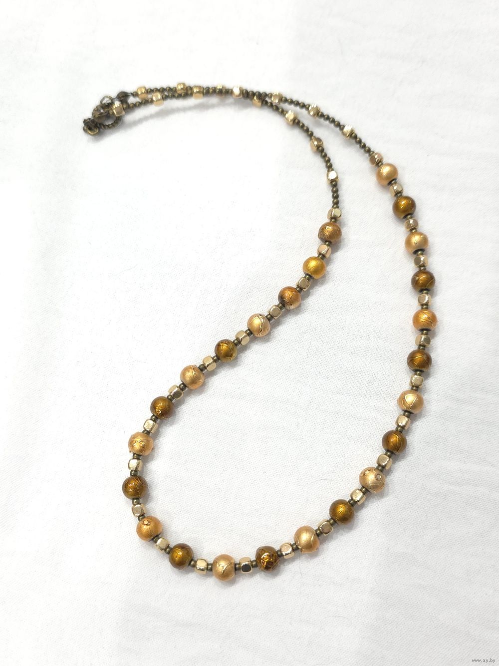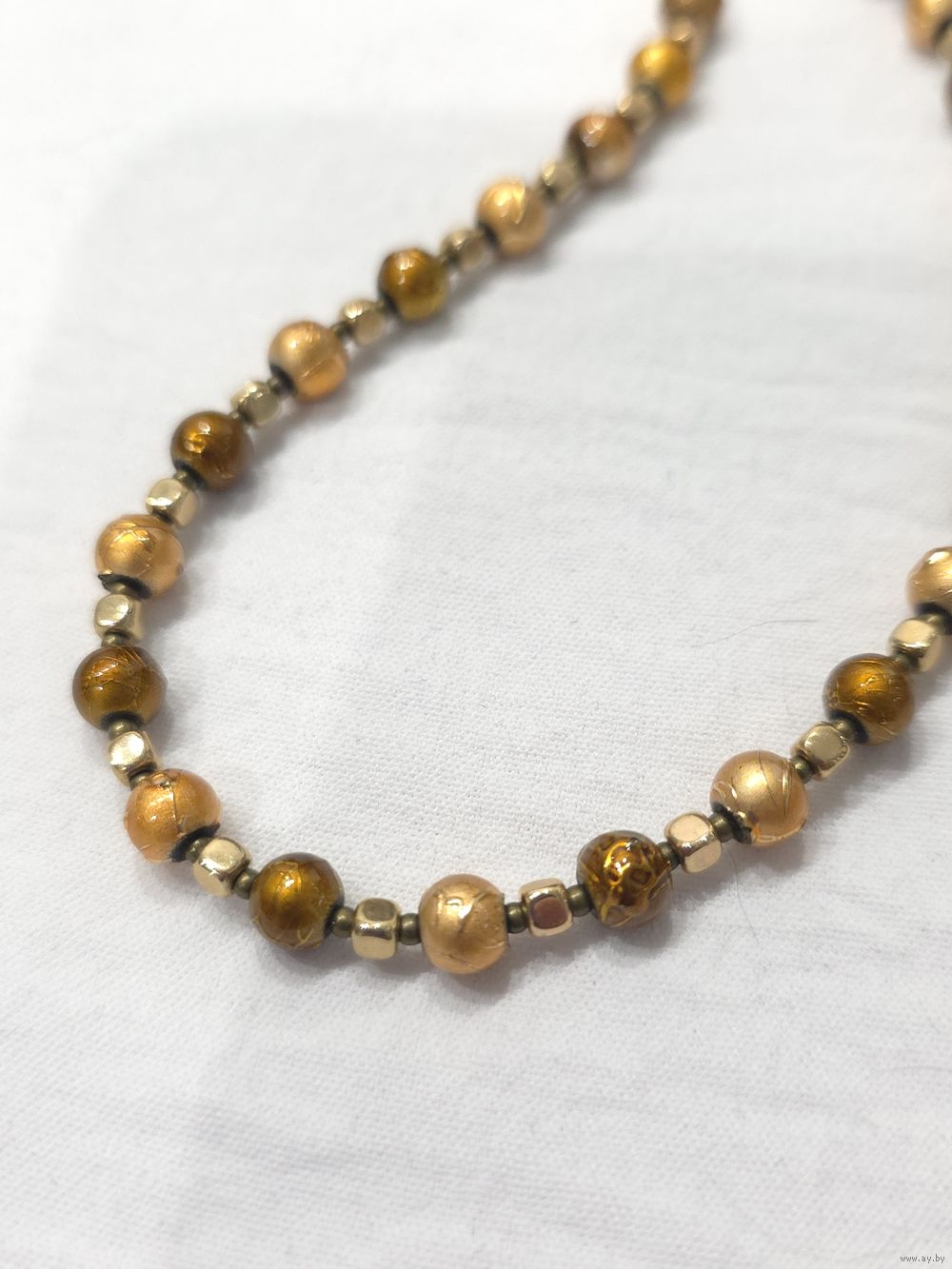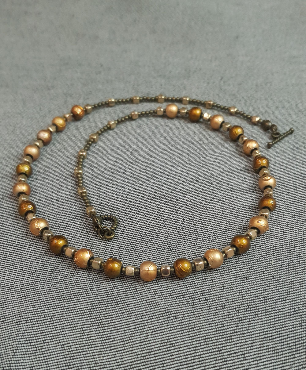 Бусы-чокер жатое стекло, Чехия, латунь