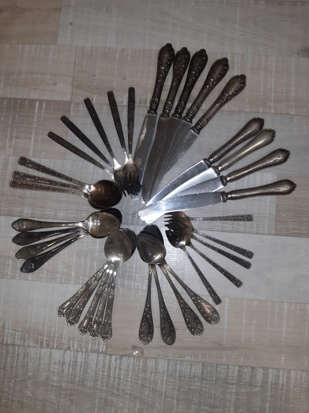 Лот вилки , ложки , ножи . Мельхиор