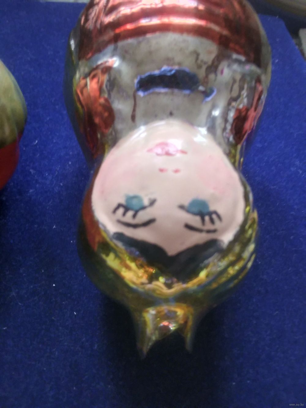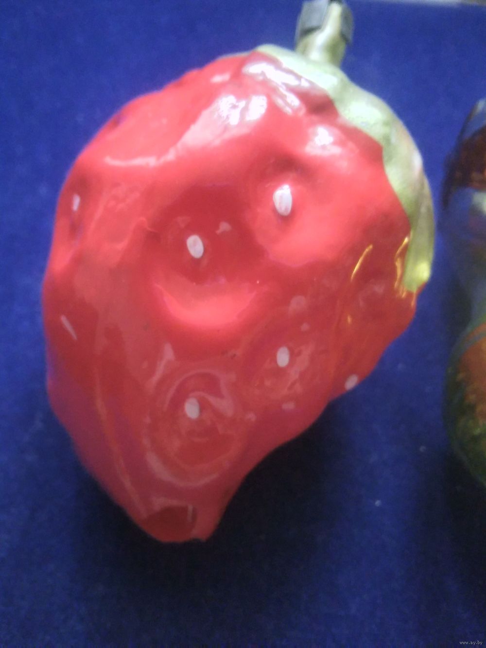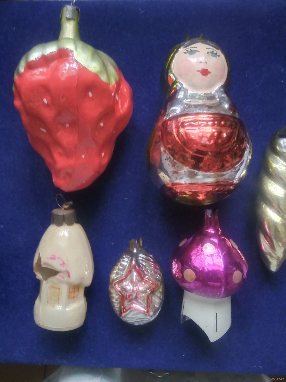 Лот на реставрацию.У Матрёшки только скол трубочки,у Клубнички скол на кончике ягодки,у Медальона восстановлен небольшой скол с одной стороны около звезды ,остальные игрушки нуждаются в полной реставрации.