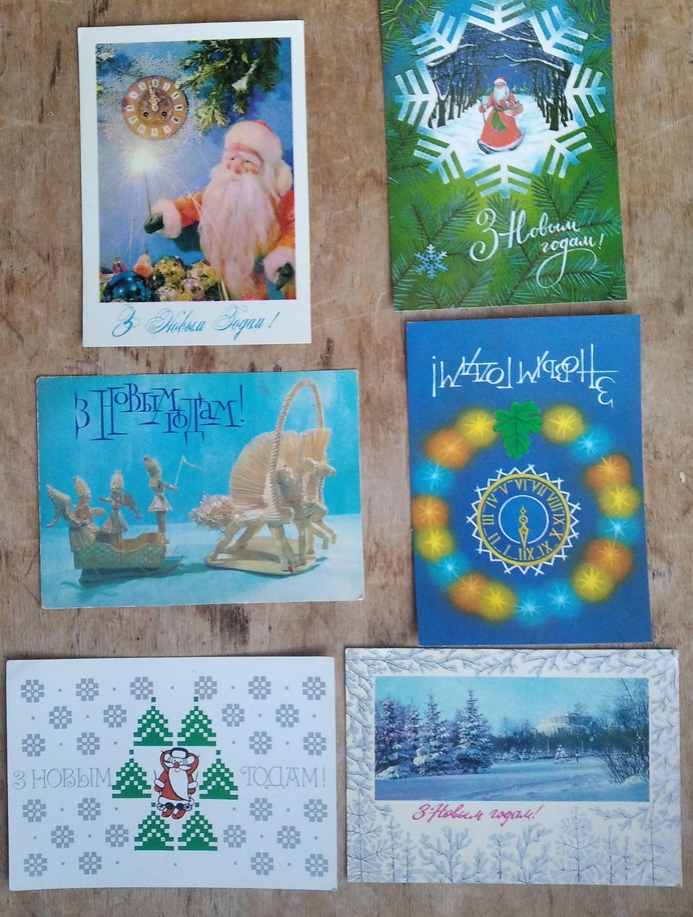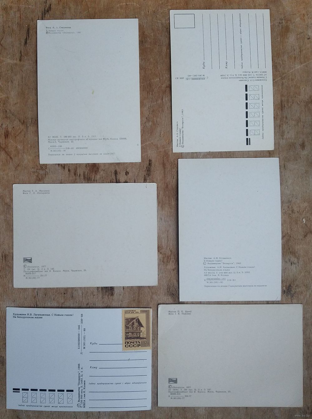 Лот з 6-ці беларускіх паштовак "З Новым годам" (Смалякоў, Лагуноўская, Хількевіч Мельянец, Стасевіч, Арлоў) 1970-80-е. Чыстыя. Цана за ўсе.