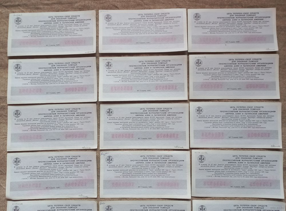 Лотерейные билеты цена за все