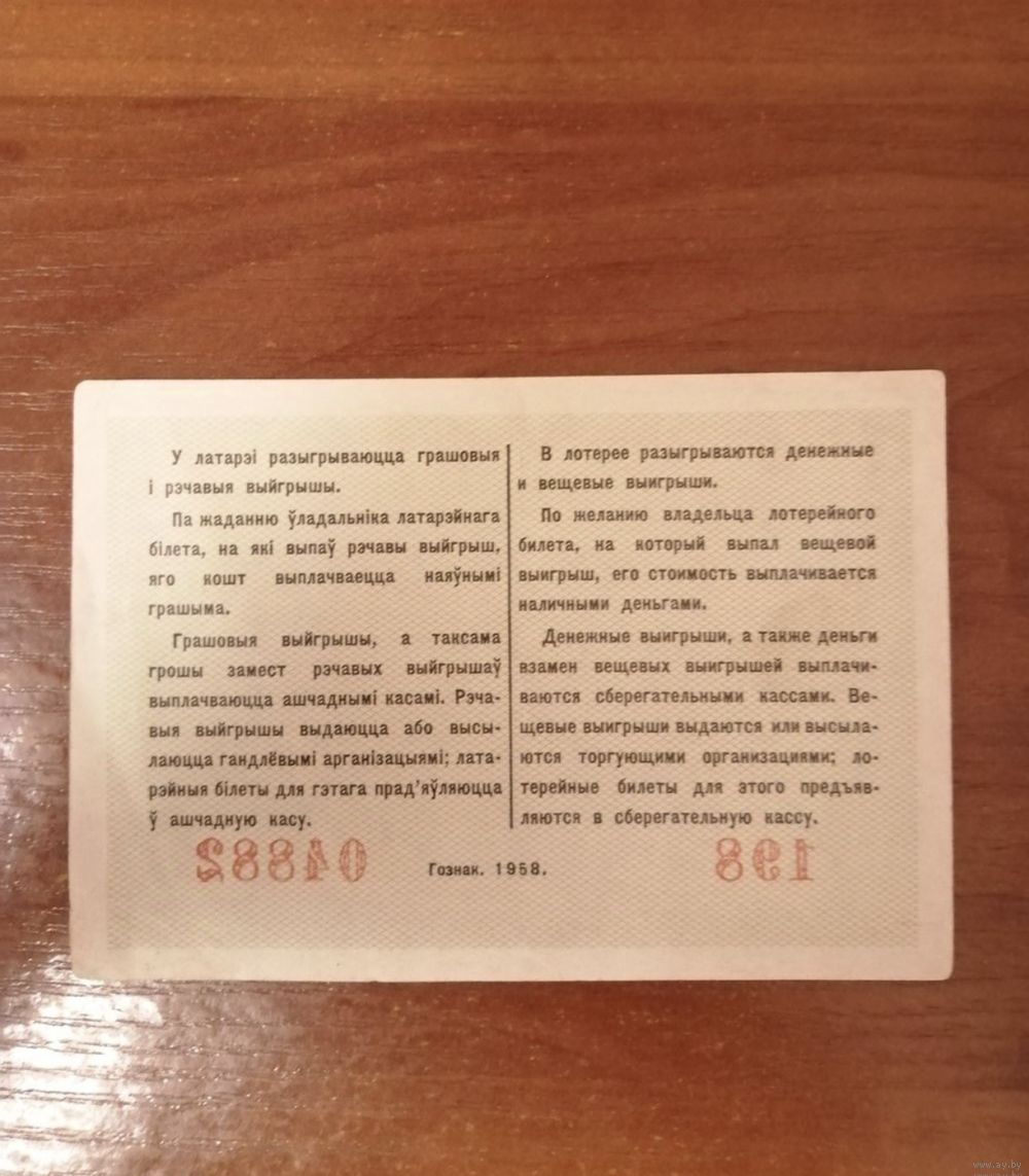 Лотерейный билет 1958 год