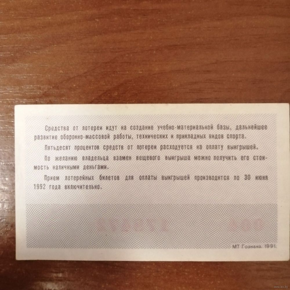 Лотерейный билет 1991 год