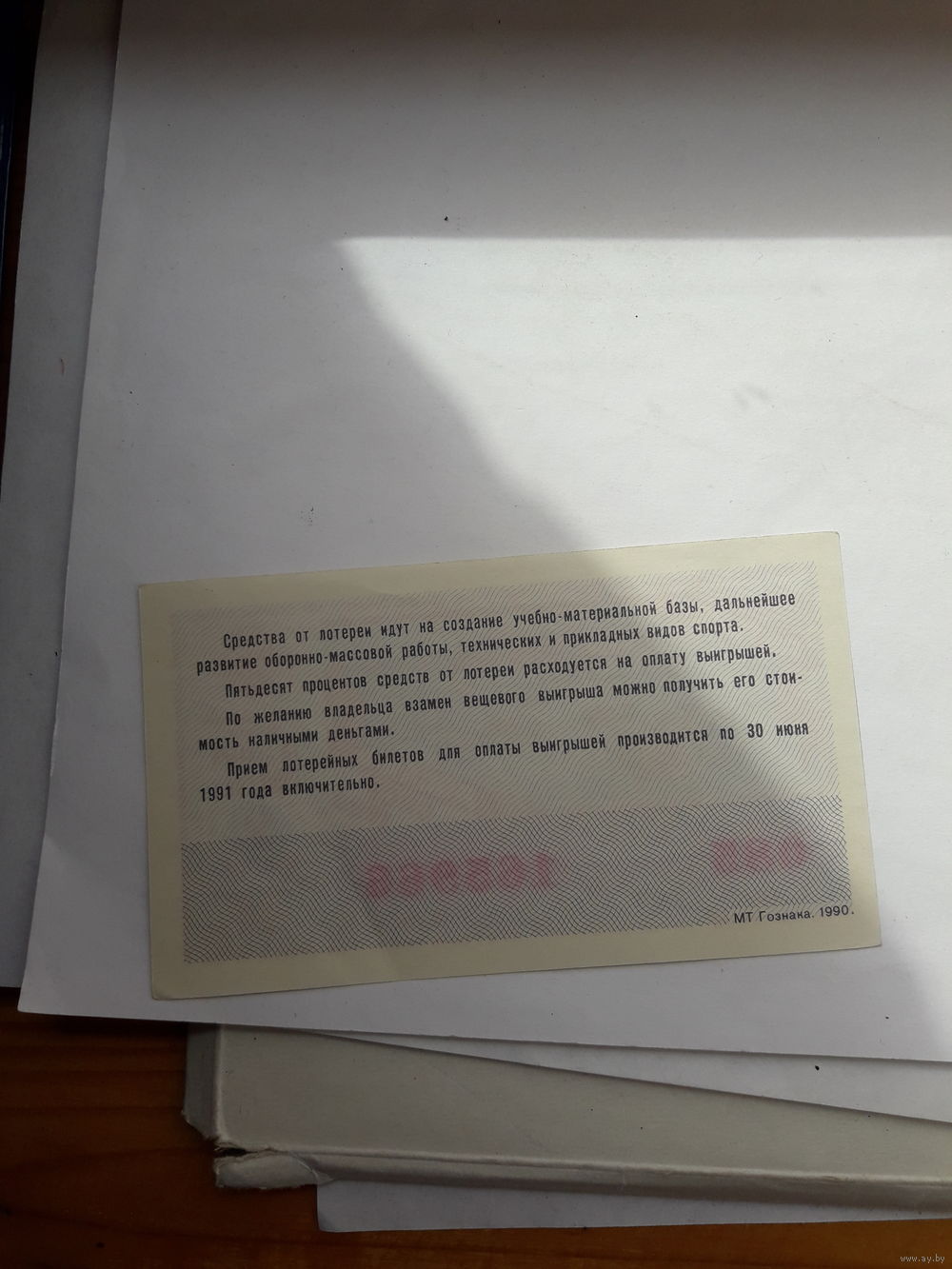 Лотерейный билет ДОСААФ 1990-2