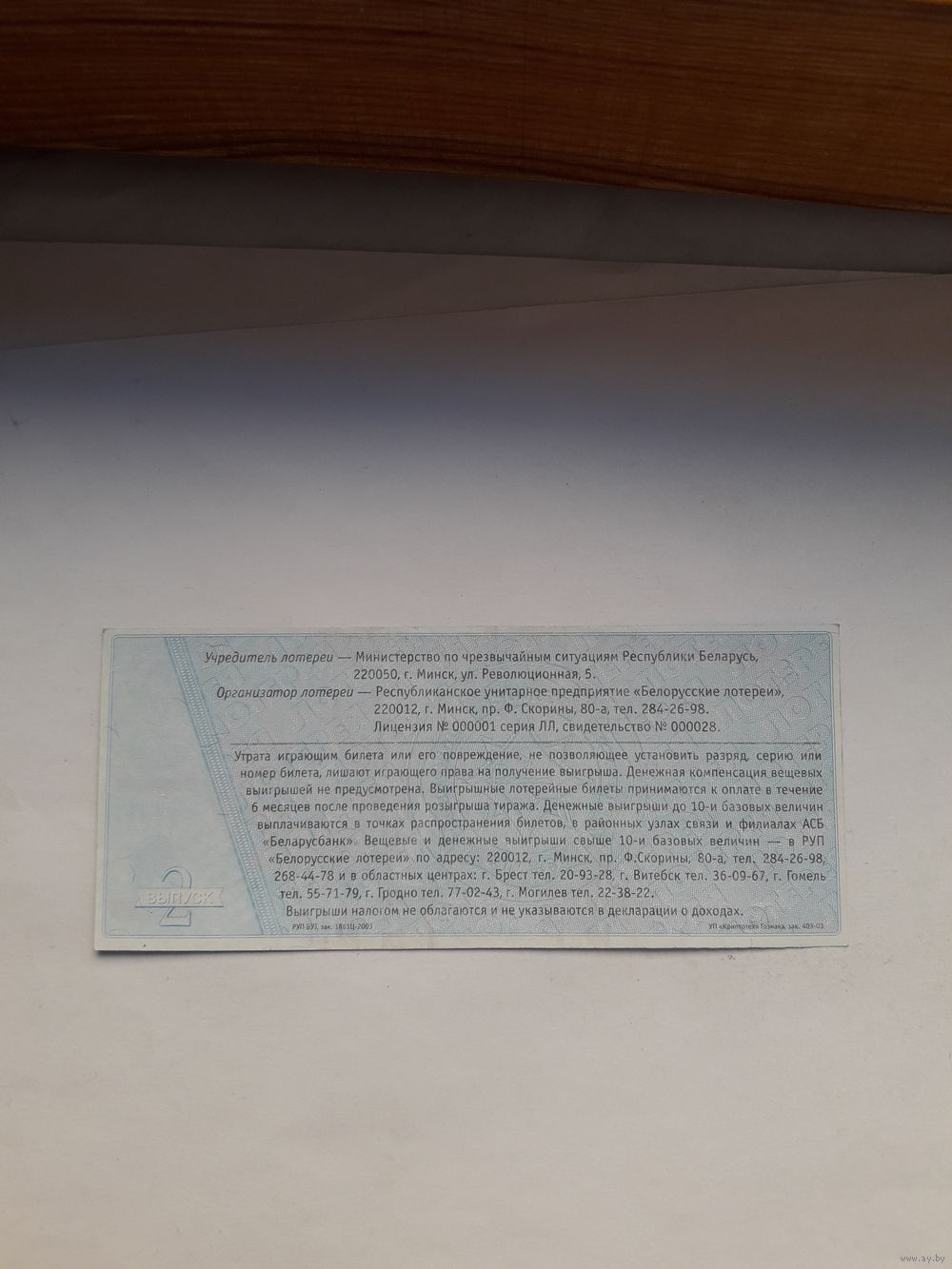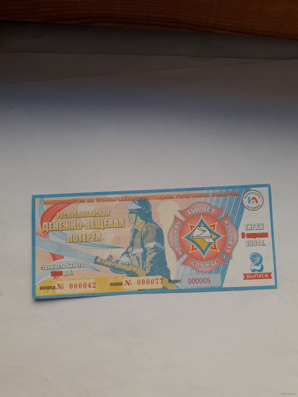 Лотерейный билет ДВЛ (МЧС РБ) 150 лет выпуск 2