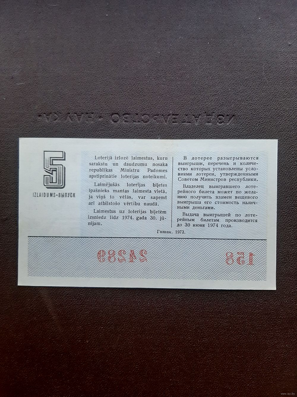 Лотерея 1973. 5 серия. Латвия. С 1 рубля