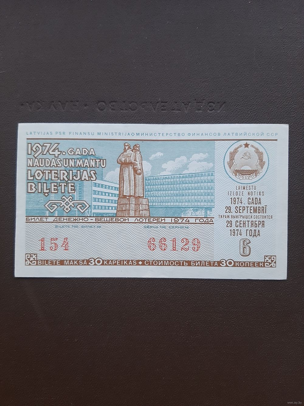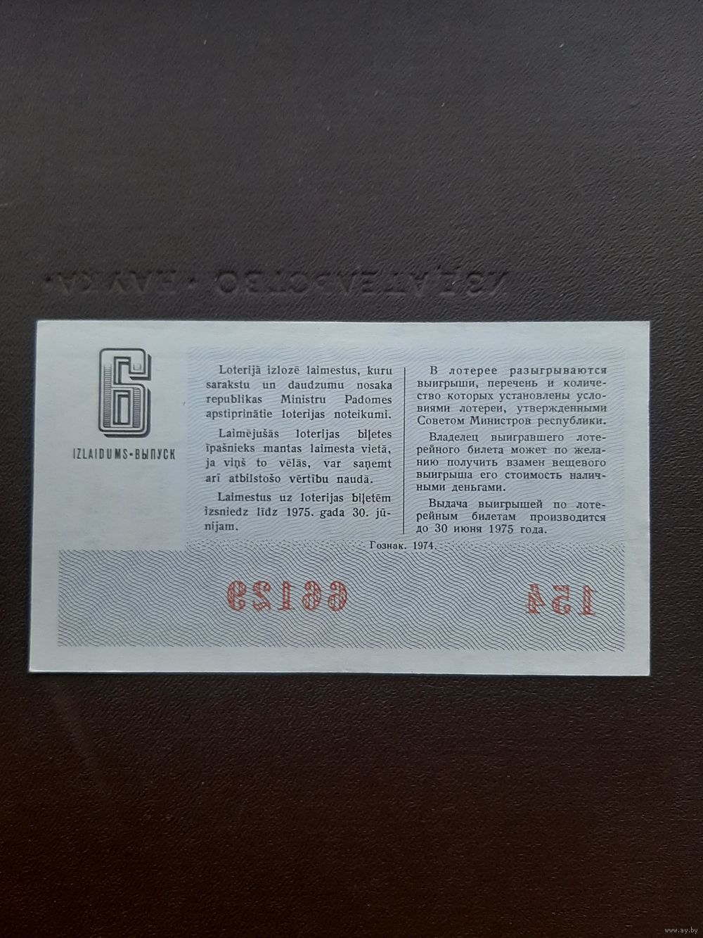 Лотерея 1974. 6 серия. Латвия. С 1 рубля