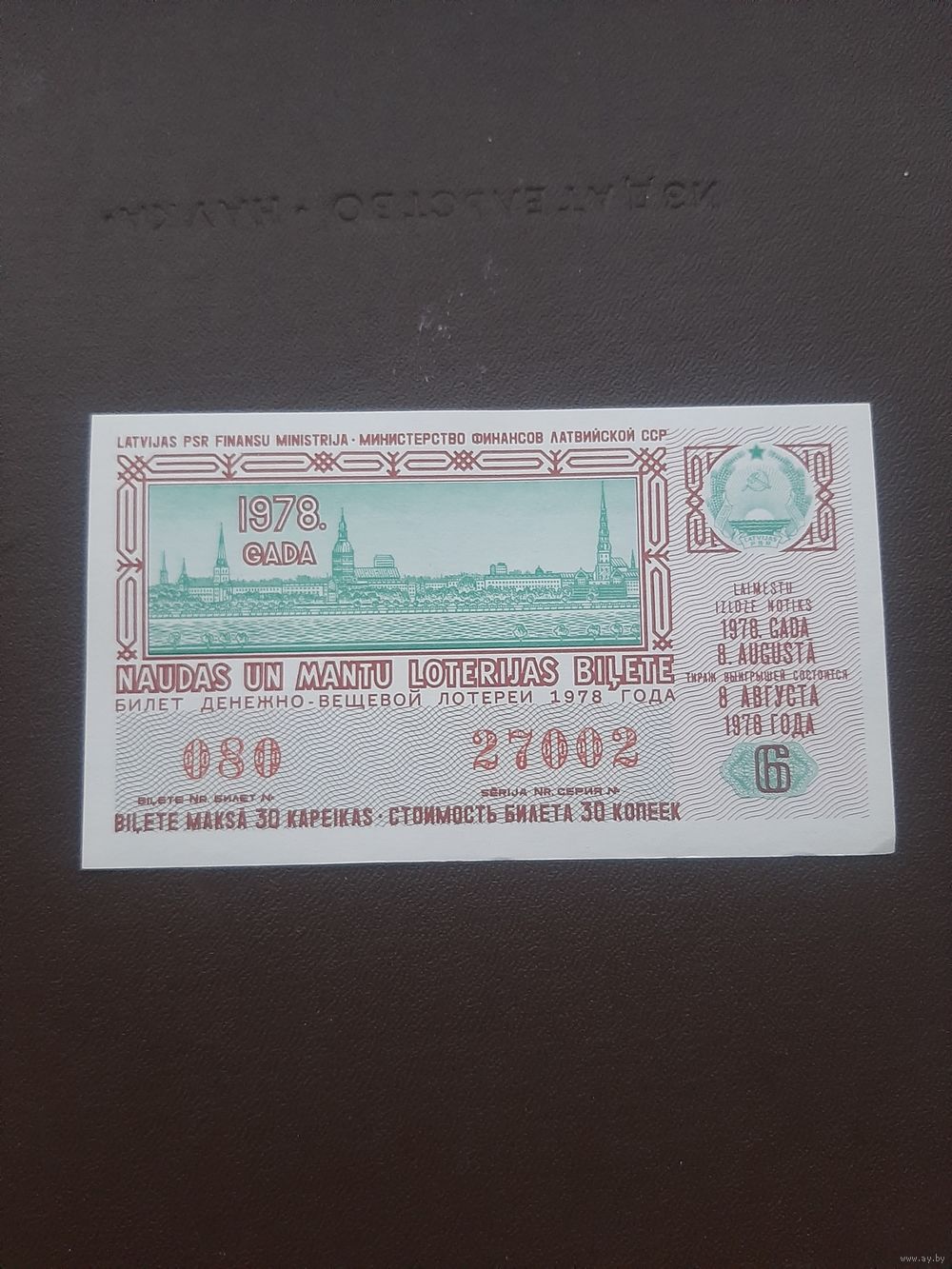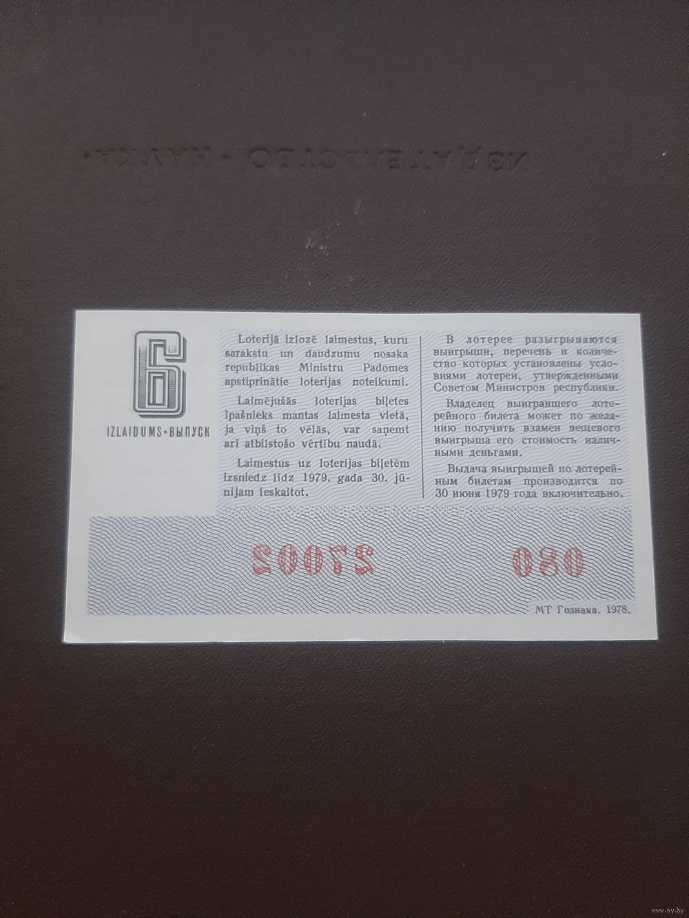 Лотерея август 1978. Серия 6. Латвия. С 1 рубля