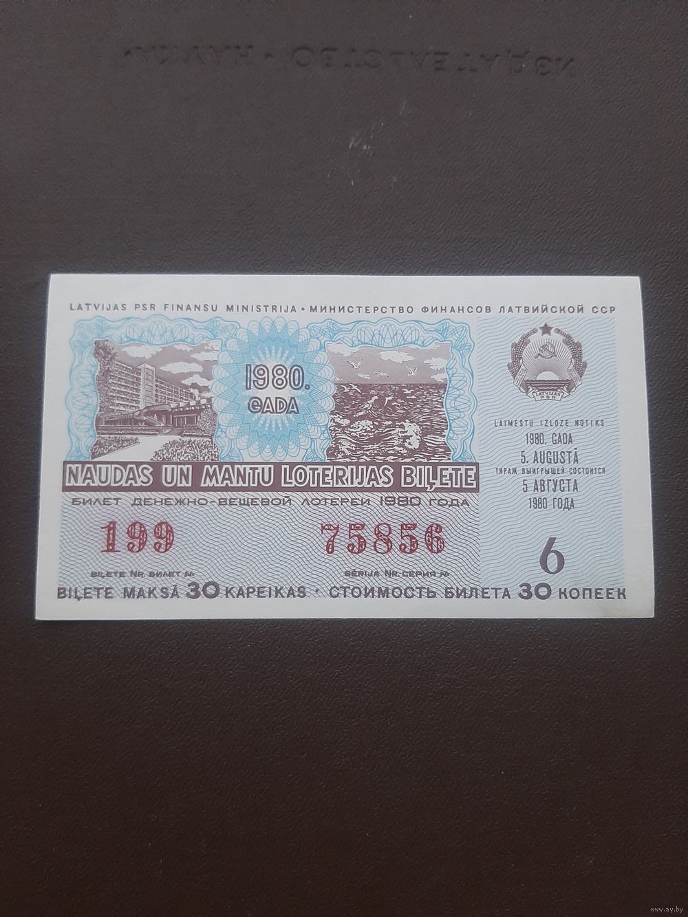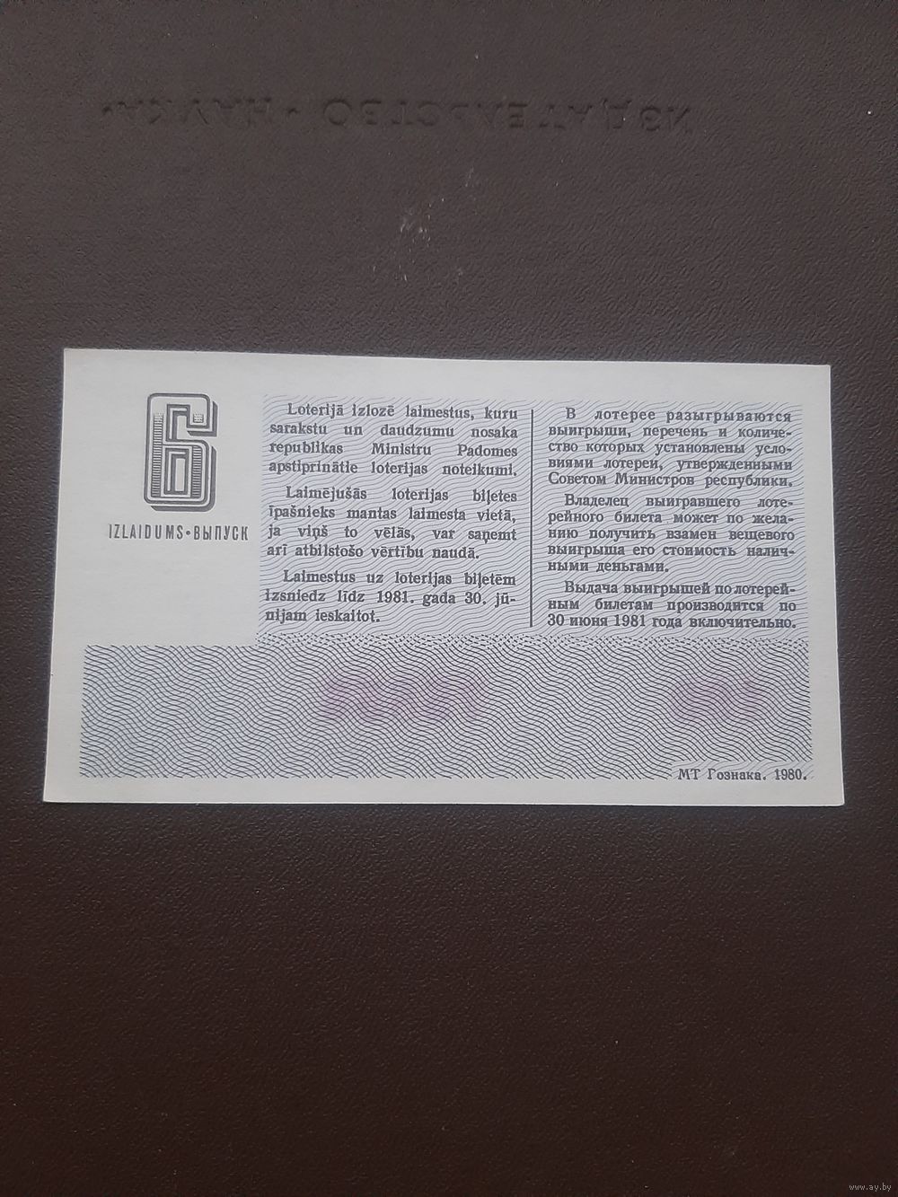 Лотерея август 1980. Серия 6. Латвия. С 1 рубля