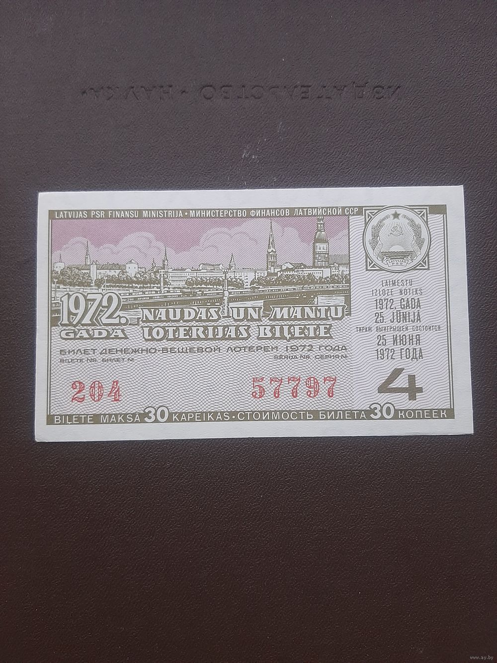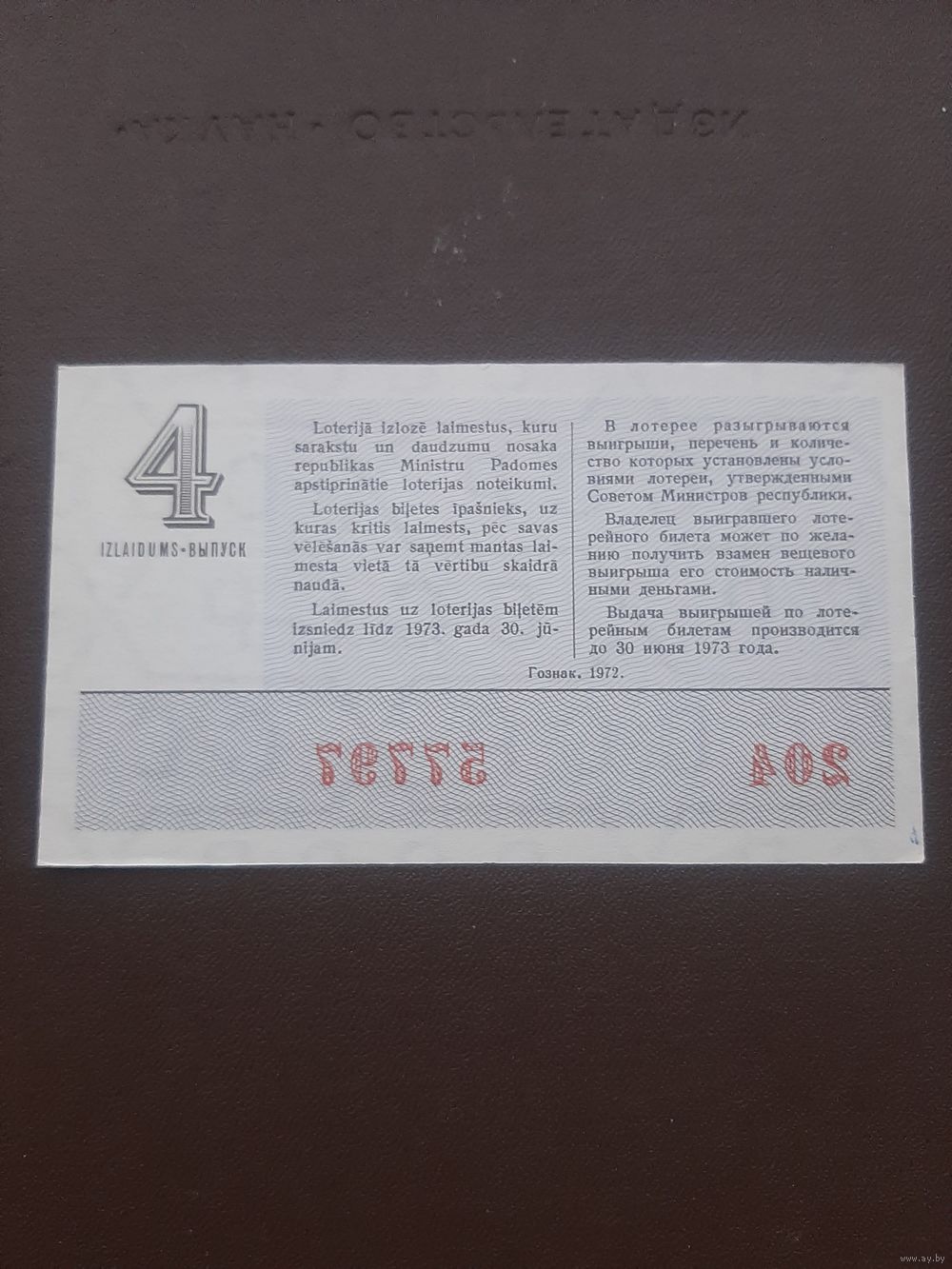 Лотерея июнь 1972. Серя 4. Латвия. С 1 рубля