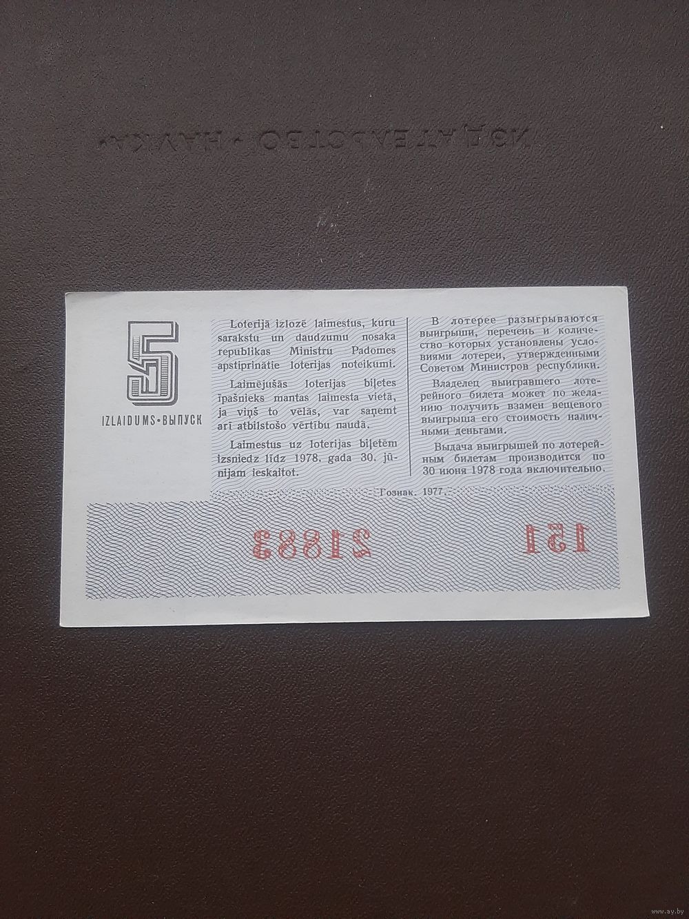 Лотерея июнь 1977. 5 серия. Латвия. С 1 рубля