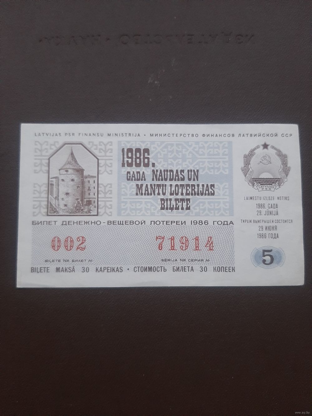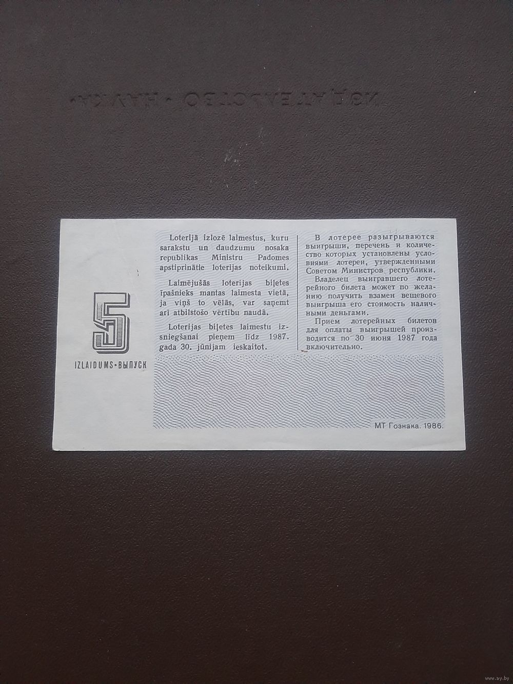 Лотерея июнь 1985. Серия 5. Латвия. С 1 рубля