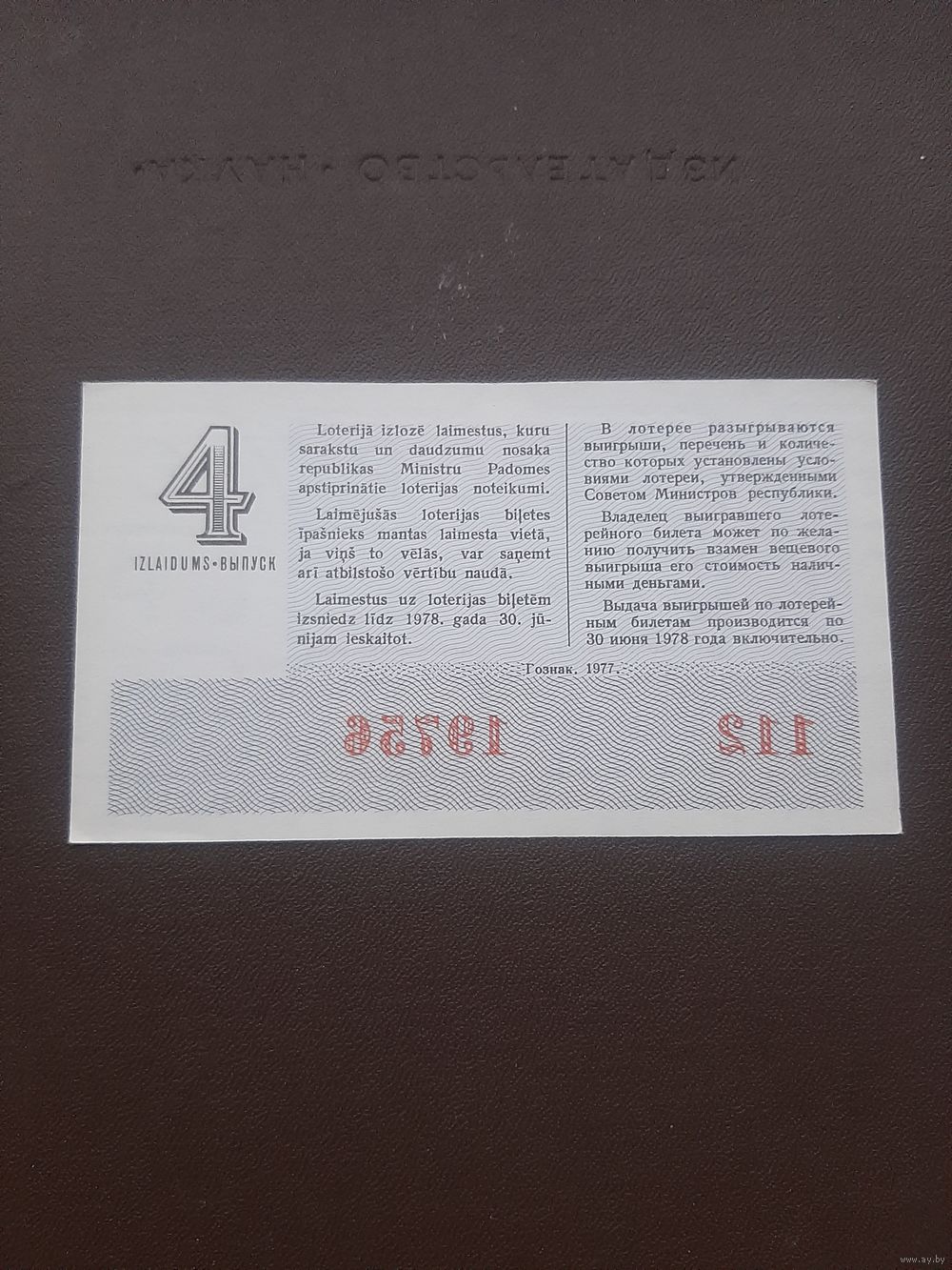 Лотерея май 1977. Серия 4. Латвия. С 1 рубля