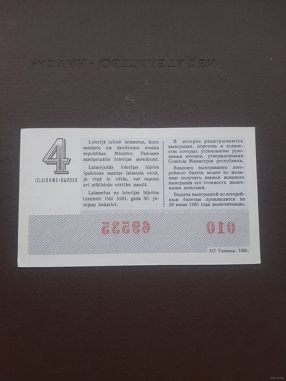 Лотерея май 1980. Серия 4. Латвия. С 1 рубля