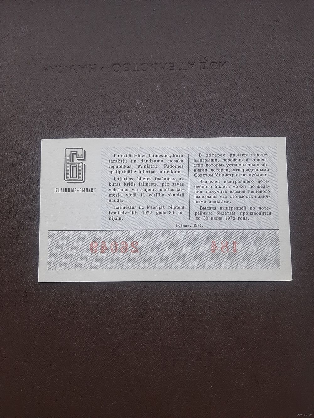 Лотерея сентябрь 1971. Серия 6. Латвия. С 1 рубля