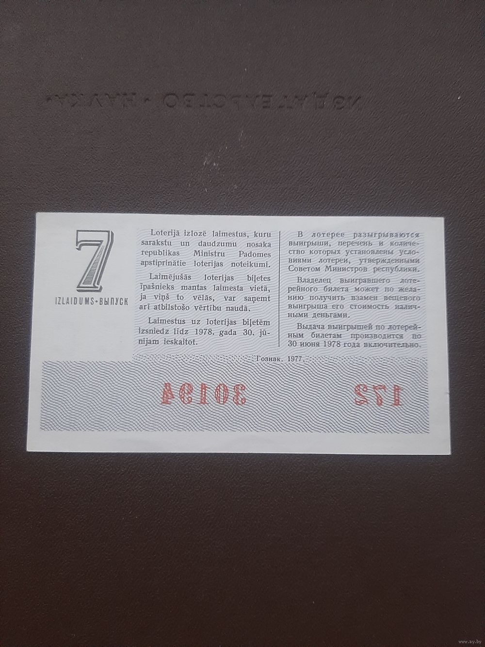 Лотерея сентябрь 1977. Серия 7. Латвия. С 1 рубля