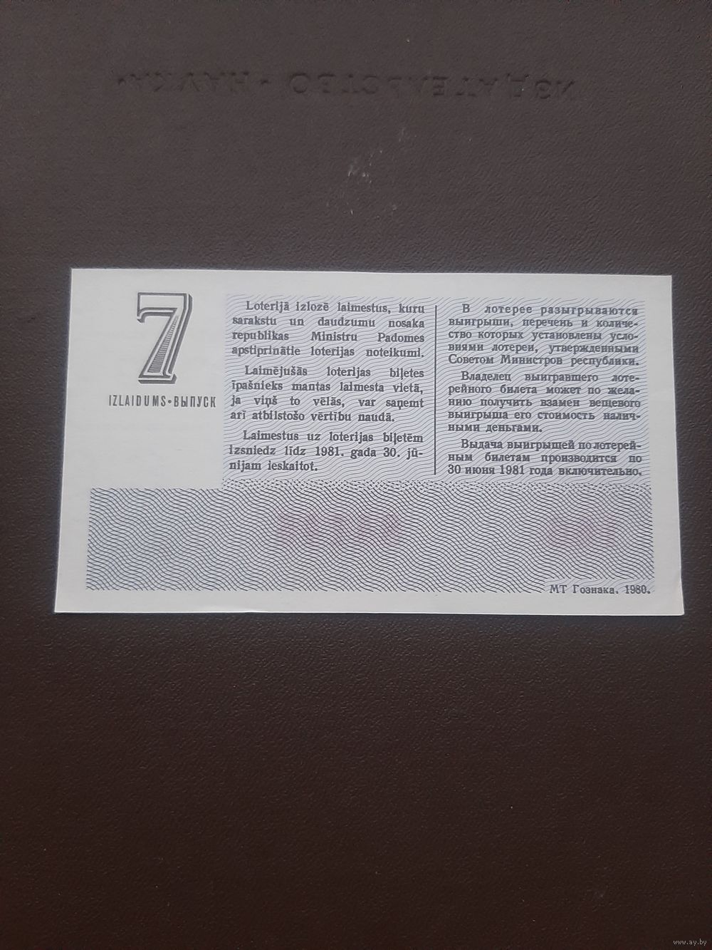 Лотерея сентябрь 1980. Серия 7. Латвия. С 1 рубля