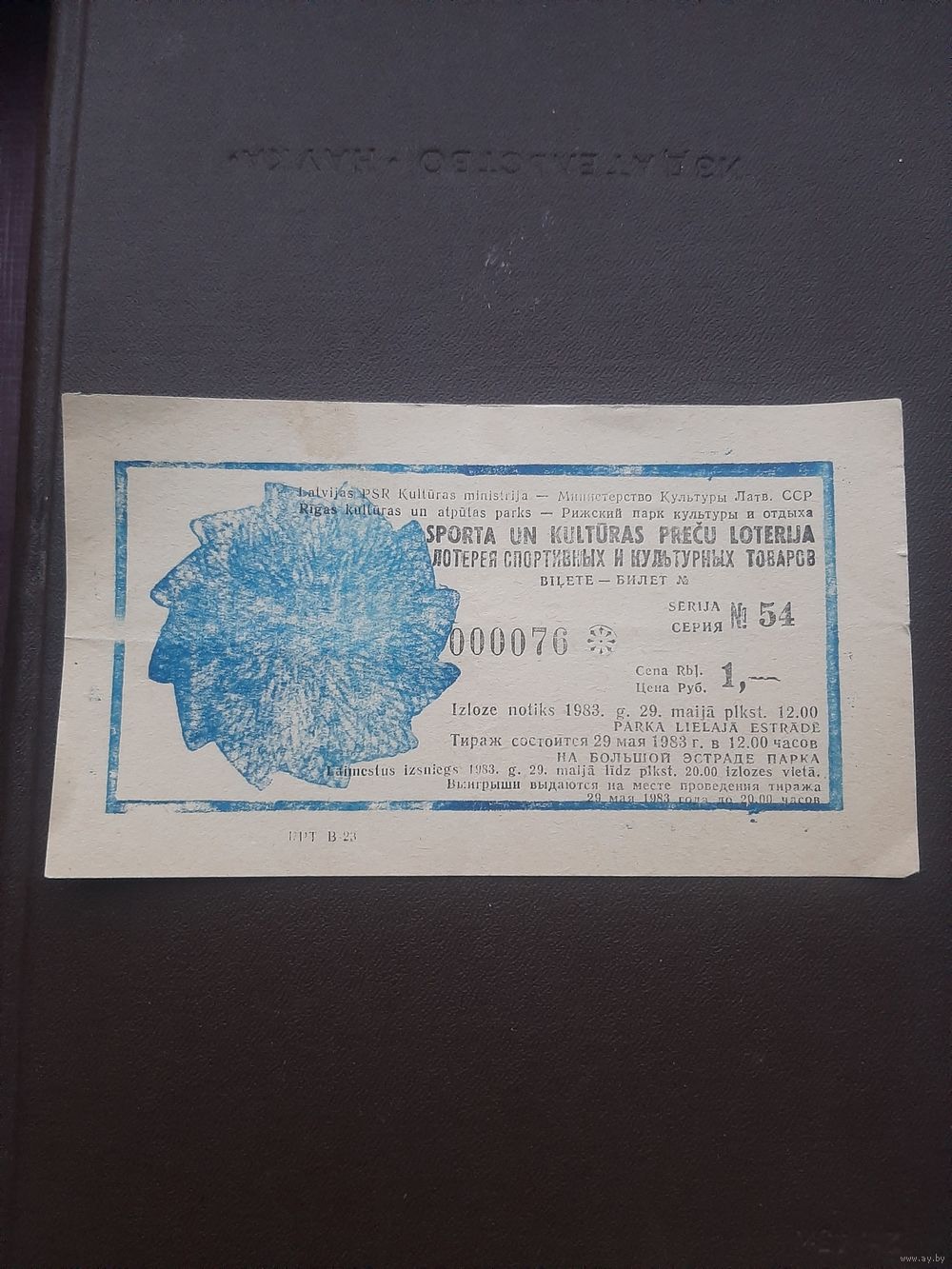 Лотерея спортивных и культурных товаров май 1983. Рижский парк культуры и отдыха. Латвия. С 1 рубля