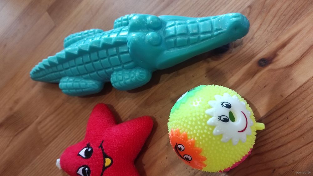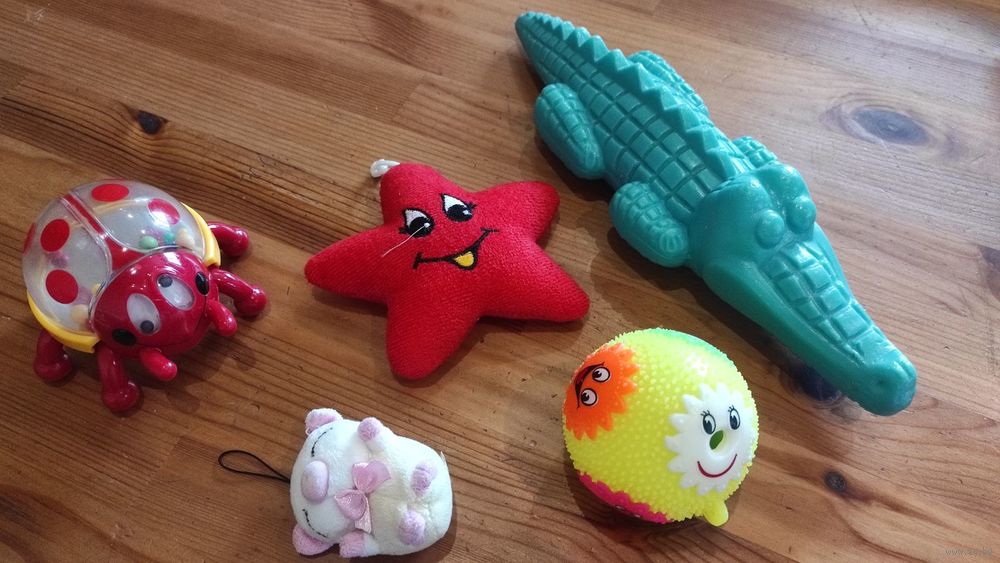 Крокодил пластик 29 см, звездочка подвесная, Тактильный мячик звенит, маленький брелок и божья коровка.