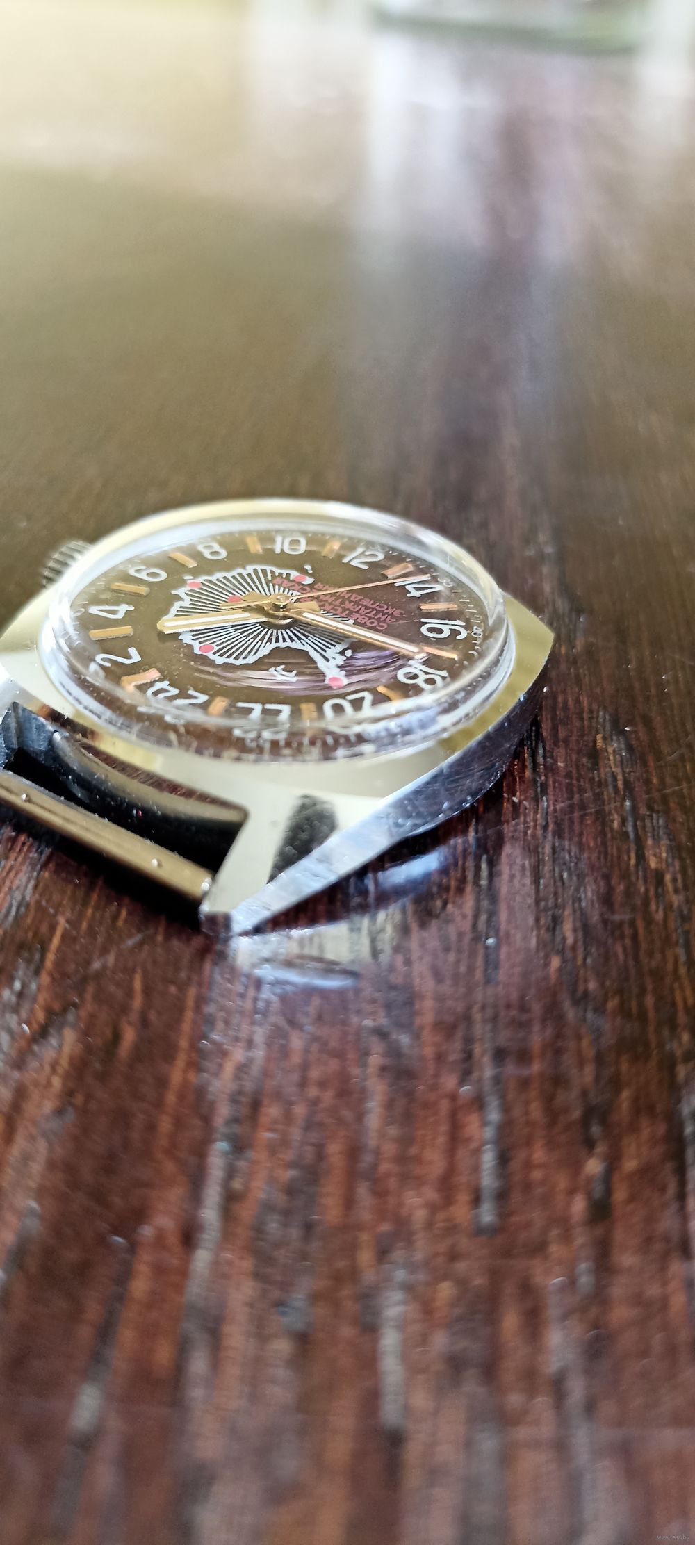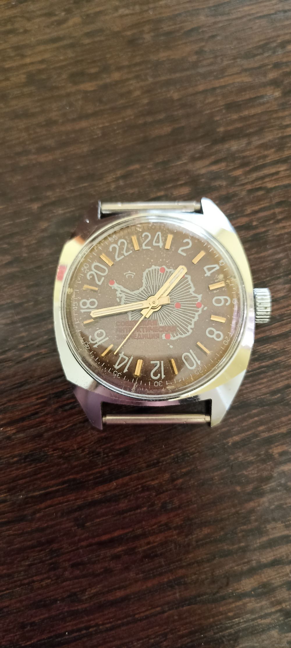 Часы редкие, существовало несколько вариантов, на 7 точек экспедиции, на 6 точек и на 5. На 7 встречаются, на 6 редко, 5 крайне редкие. Здесь экземпляр на 6 экспедиций