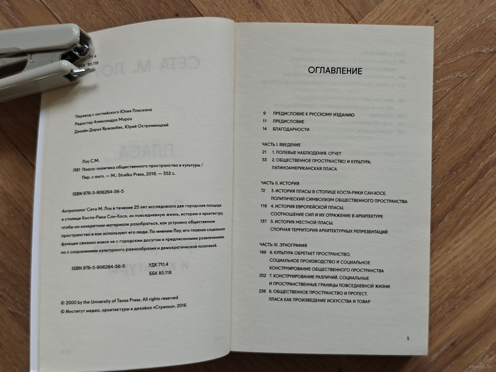 Антрополог Сета М. Лоу в течение 25 лет исследовала две городские площади в столице Коста-Рики Сан-Хосе, их повседневную жизнь, историю и архитектуру, чтобы на конкретном материале разобраться, как устроено общественное пространство и как используют его люди. По мнению Лоу, его главная социальная функция связана вовсе не с городским досугом и предписанными развлечениями, но с сохранением культурного разнообразия и демократической политикой.