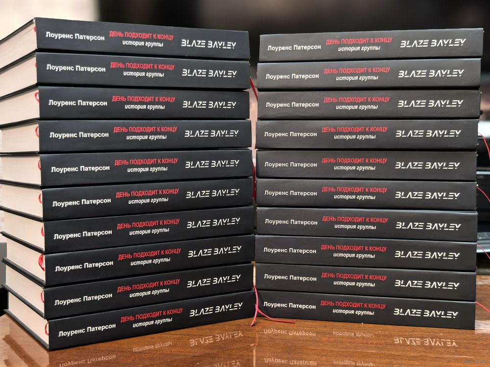 Авторское лимитированное издание 2025 года книги Лоуренса Патерсона "День подходит к концу" (оригинальное название Lawrence Paterson "At the End of the Day. The Story of Blaze Bayley Band") с дополнениями, которых нет в британском оригинале 2010 года. Перевод: Михаил Ивакин. На русском языке ранее не издавалась!