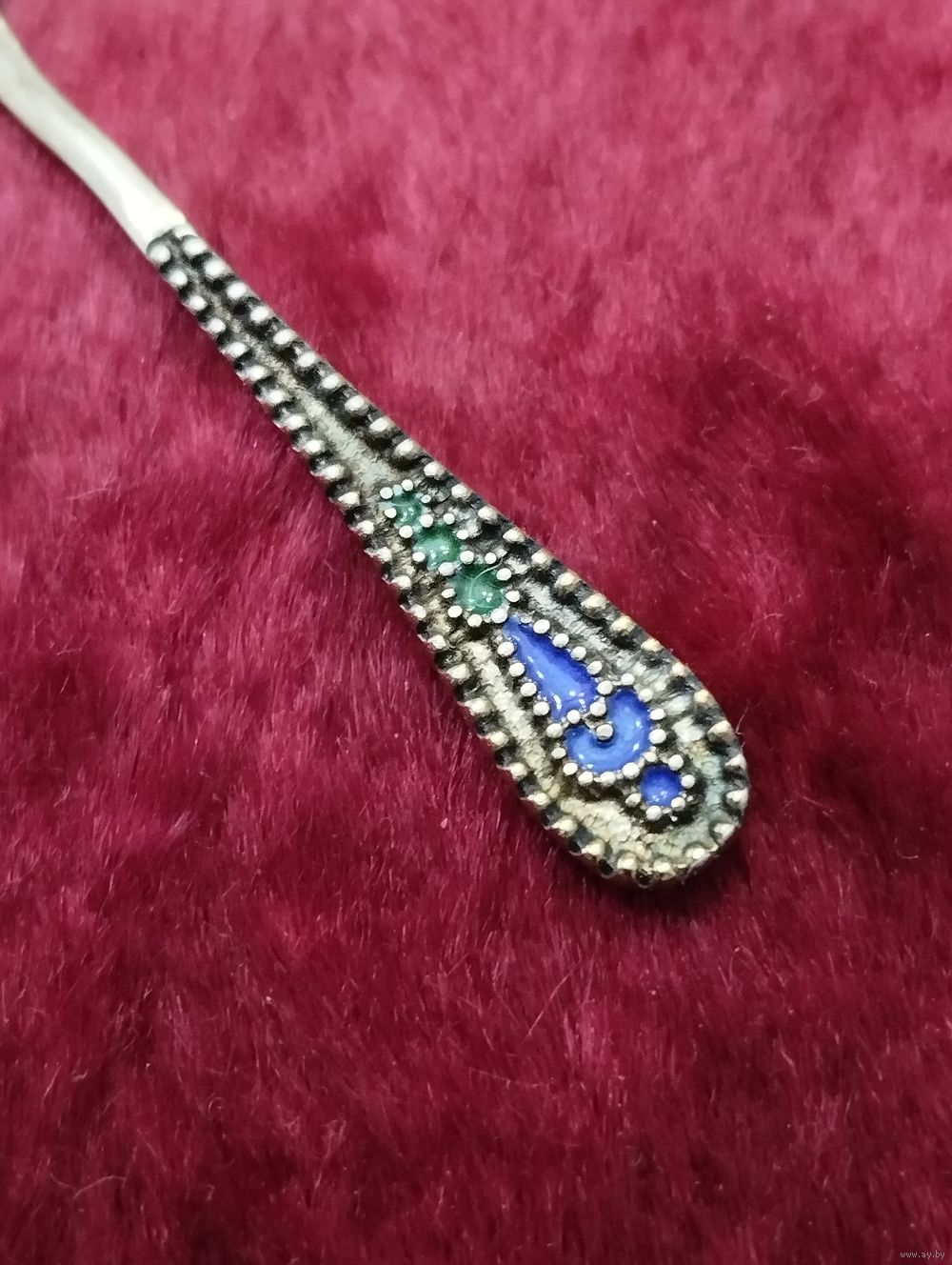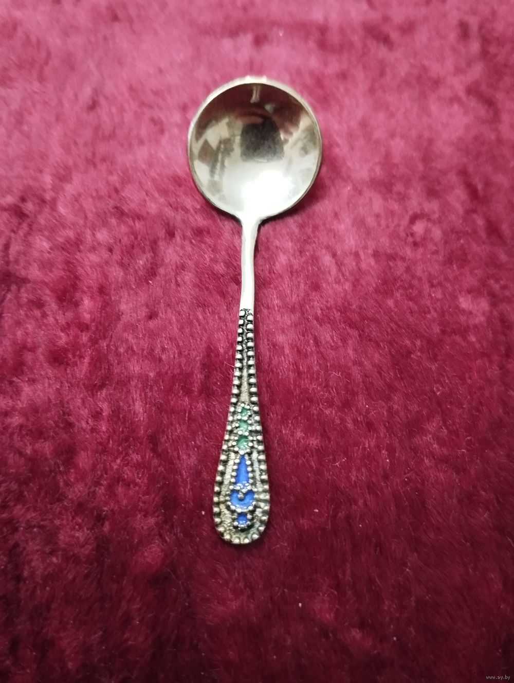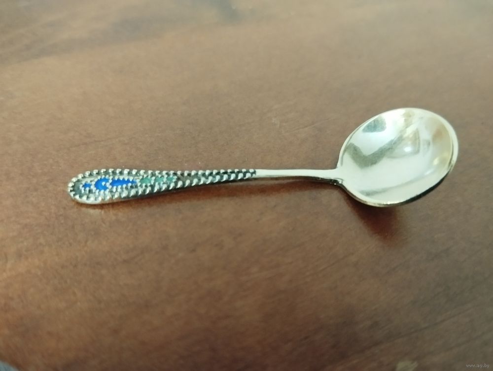 Ложечка для соли специй серебро 875 СССР Ленинградский ювелирный завод Русские Самоцветы.