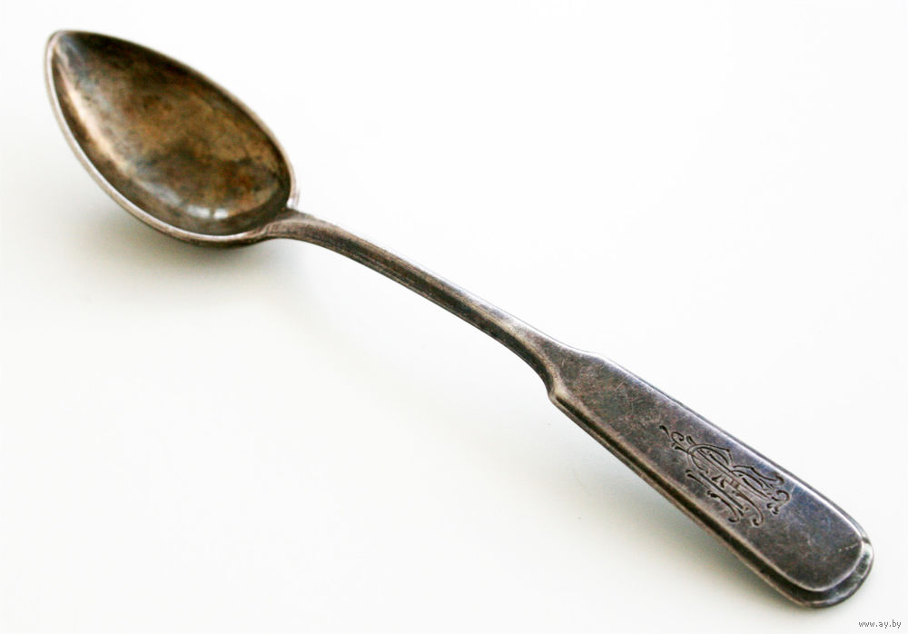 Ложечка кофейная с монограммой, серебро 84 пробы. Варшава, братья Хемпель, 1908-1915 гг.