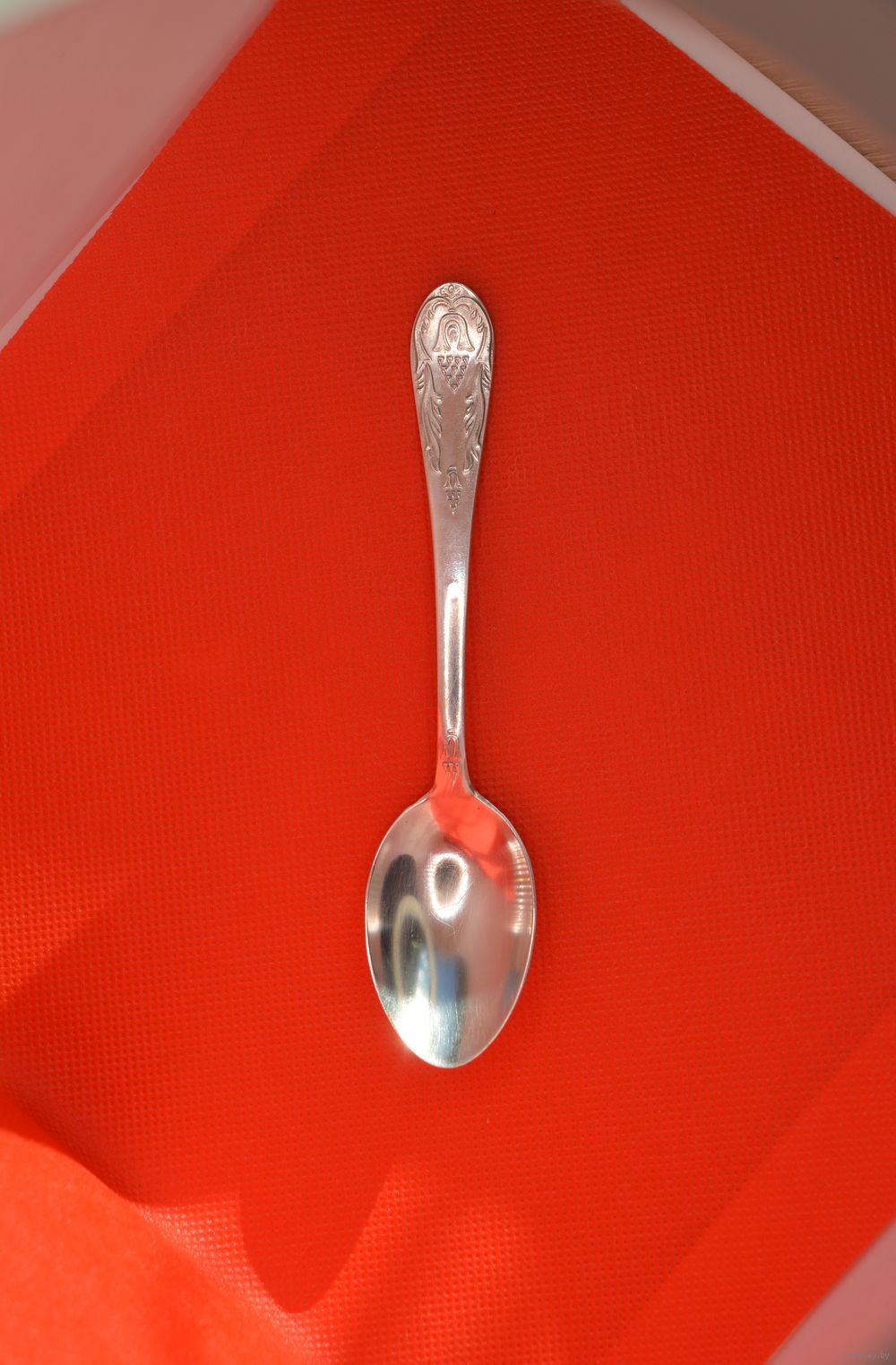Коллекционная винтажная серебряная чайная ложка 875 пробы. Узор "каштан". Изготовлена на "Киевском заводе им. Дзержинского" в 1973 г.. Вес - 29,69 гр. Длина - 14 см. Пробирное клеймо: "звезда". Состояние: отличное.