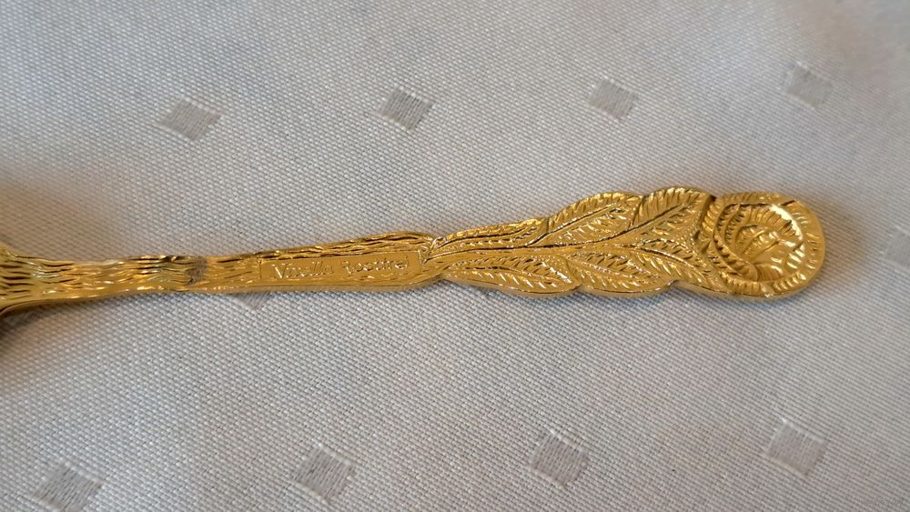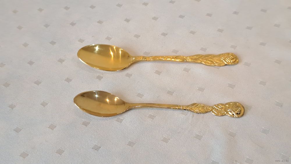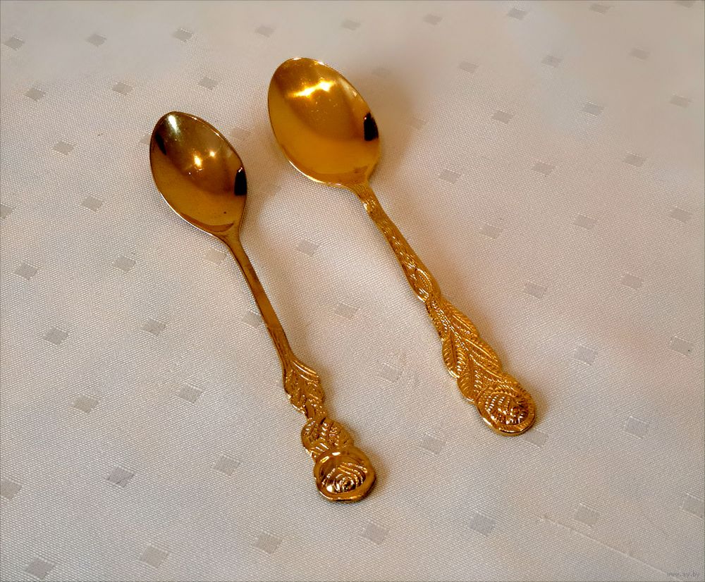 Ложка чайная / кофейная "розочка" сталь с латунным покрытием Германия 2 штуки, 13 и 13.5 см.