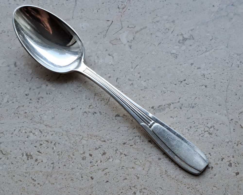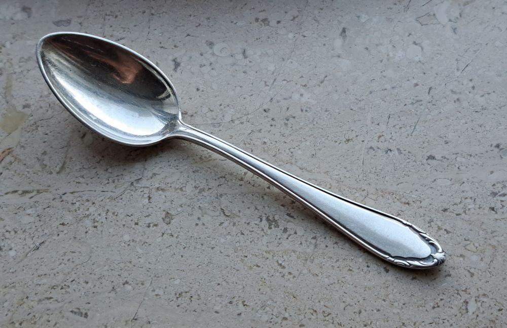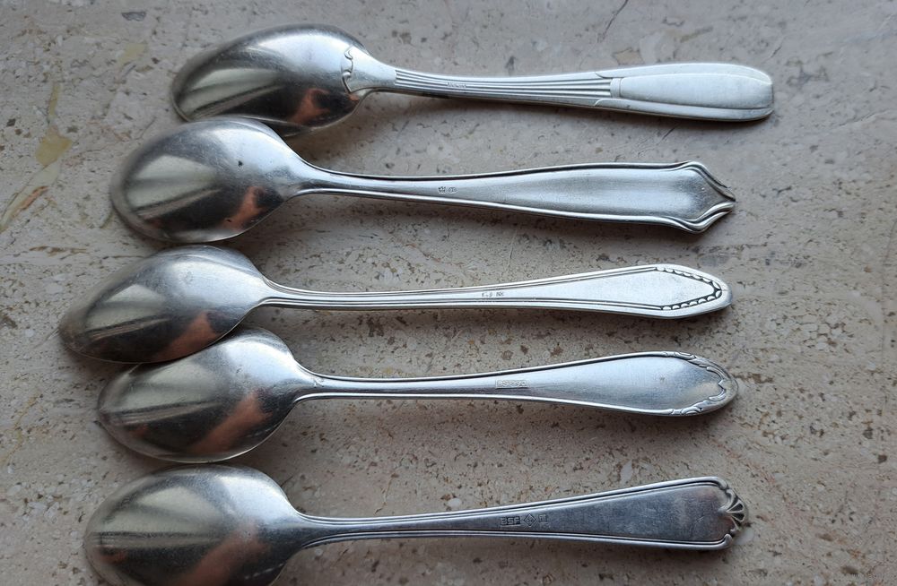 Ложка чайная посеребренная клеймо Германия ХХ век, 5 штук, длина 14 см.