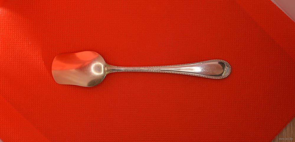 Серебряная ложка для сахара - "совок", в позолоте. Пробирное клеймо: 800, полумесяц и корона (Германия), инициалы мастера - "BS".