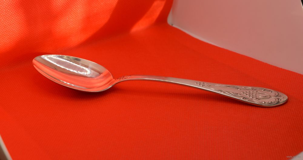 Коллекционная винтажная серебряная столовая ложка 875 пробы. Узор "каштан". Изготовлена на "Киевском заводе им. Дзержинского" в 1971 г.. Вес - 71,9 гр. Длина - 20,5 см. Пробирное клеймо: "звезда". Состояние: отличное.