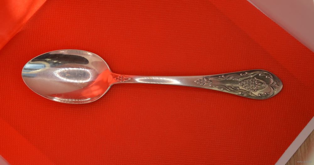 Коллекционная винтажная серебряная столовая ложка 875 пробы. Узор "каштан". Изготовлена на "Киевском заводе им. Дзержинского" в 1971 г.. Вес - 71,9 гр. Длина - 20,5 см. Пробирное клеймо: "звезда". Состояние: отличное.