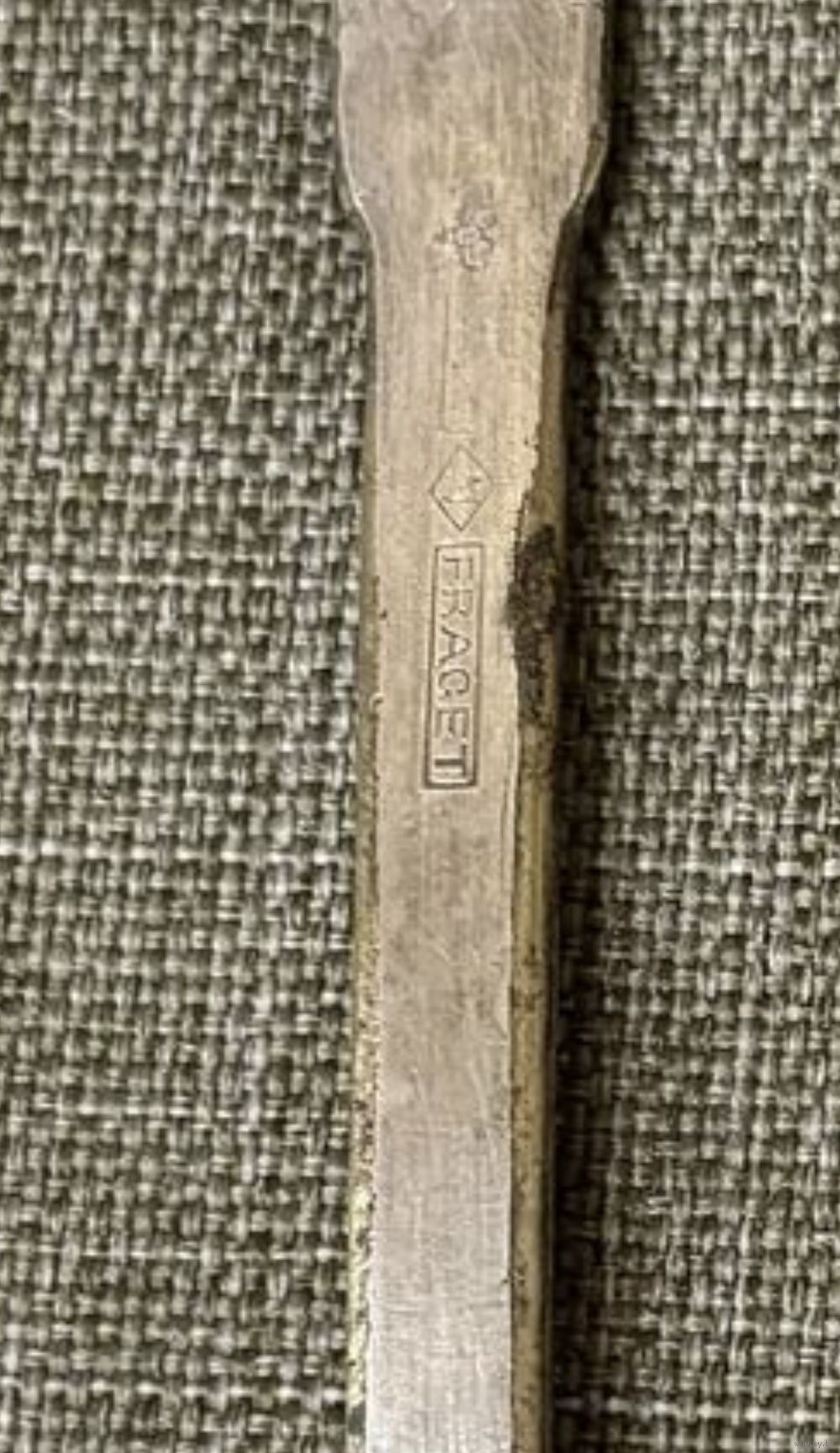 Посеребренная большая (столовая) ложка Fraget известной польской фабрики ,существовавшей с 1824 по 1939 гг.Славилась изготовлением плакатных столовых приборов.Имеются клейма,смотрите фото.Ложка из желтого металла с покрытием.Вес ложки 0,187 кг.