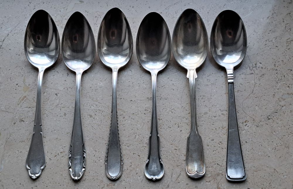 Ложка столовая посеребренная клеймо Германия ХХ век 6 штук, длина 21 см., возможна продажа по отдельности..