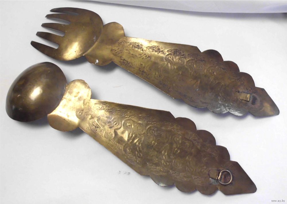 | На ложке присутствуют три пятна окисла. На вилке не хватает кольца-подвеса (петля для кольца в наличии). | |