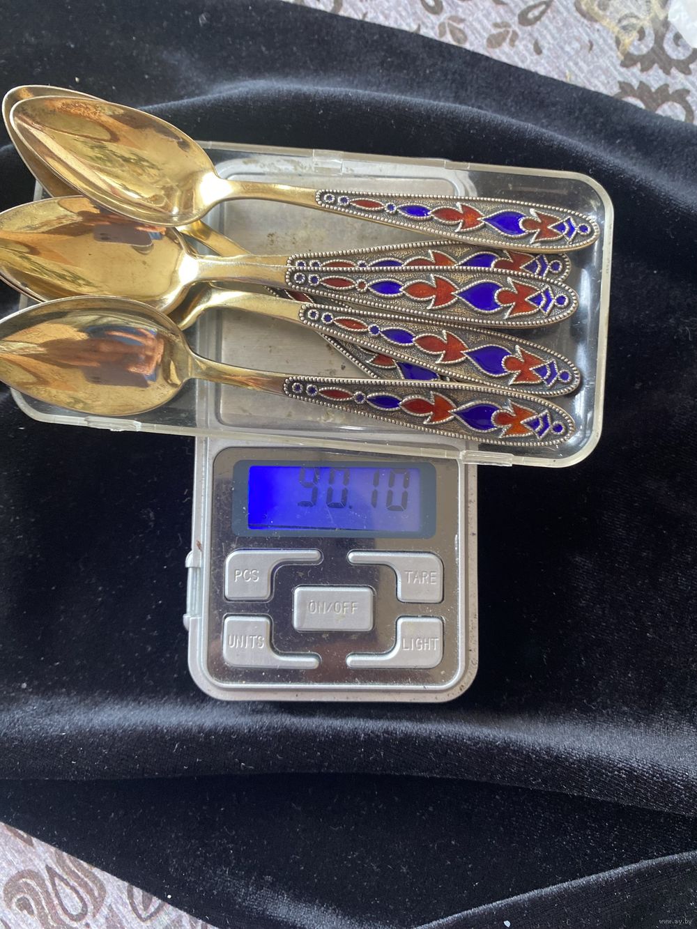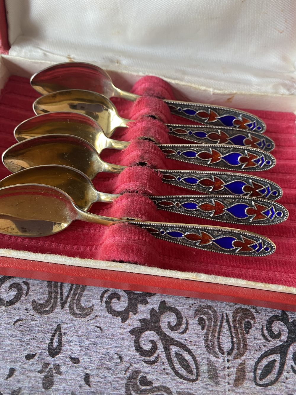 Ложки СССР чайные,серебро,позолота 875 проба,с эмалью, вес-90,1гр