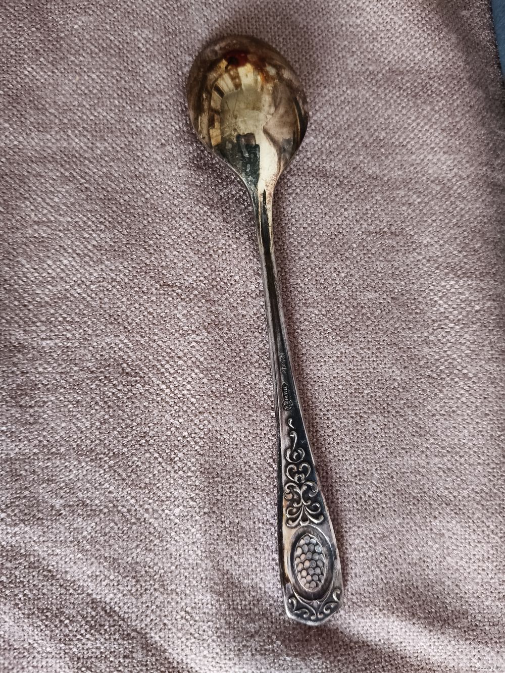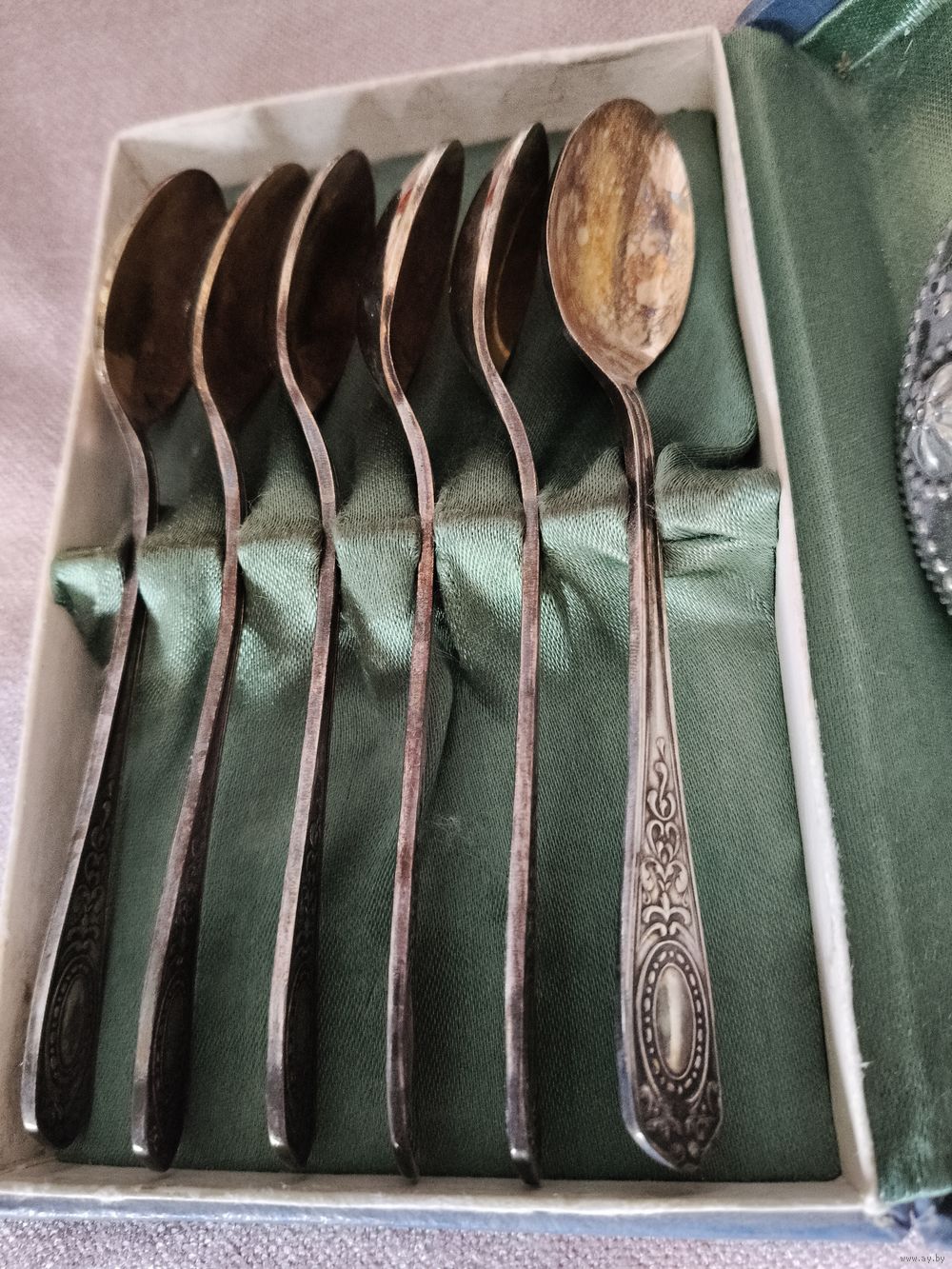 Ложки чайные мельхиор в серебре и с позолотой, 6 шт., оригинальный декор ручки, классическая форма и объем, производство - Латвия