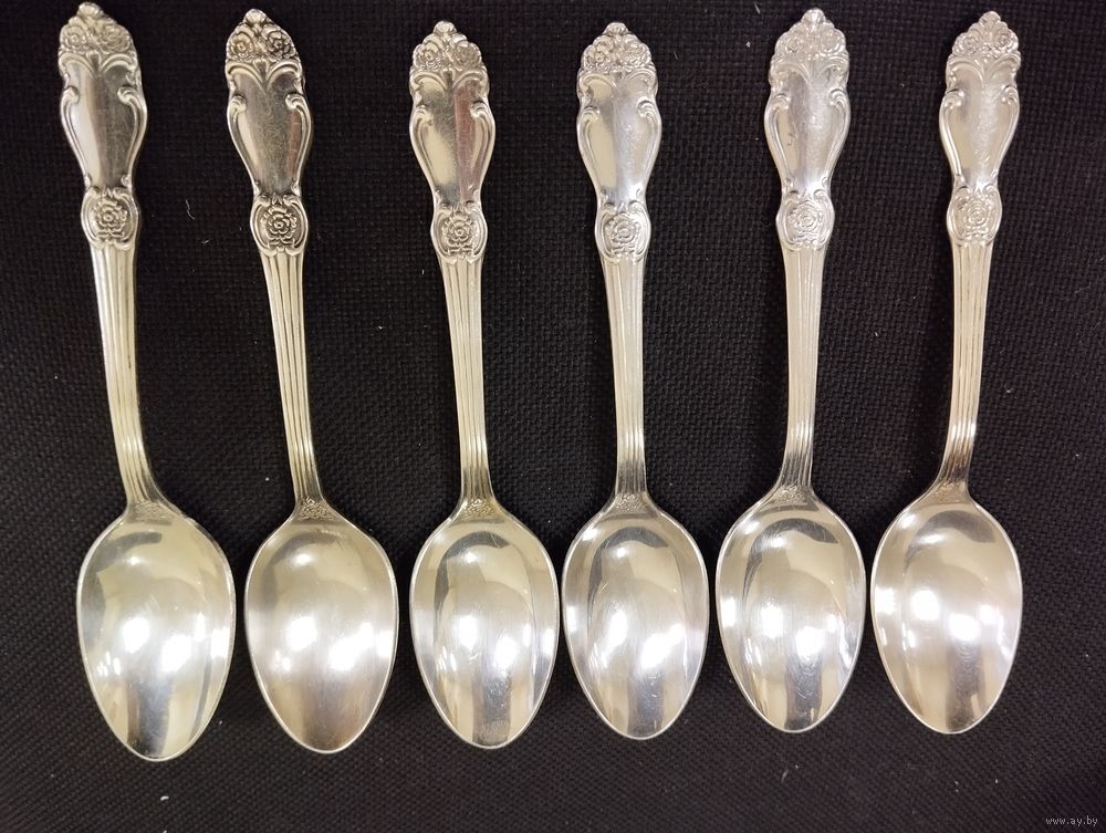 Ложки чайные серебряная Роза, мельхиор. Кольчугино, СССР
