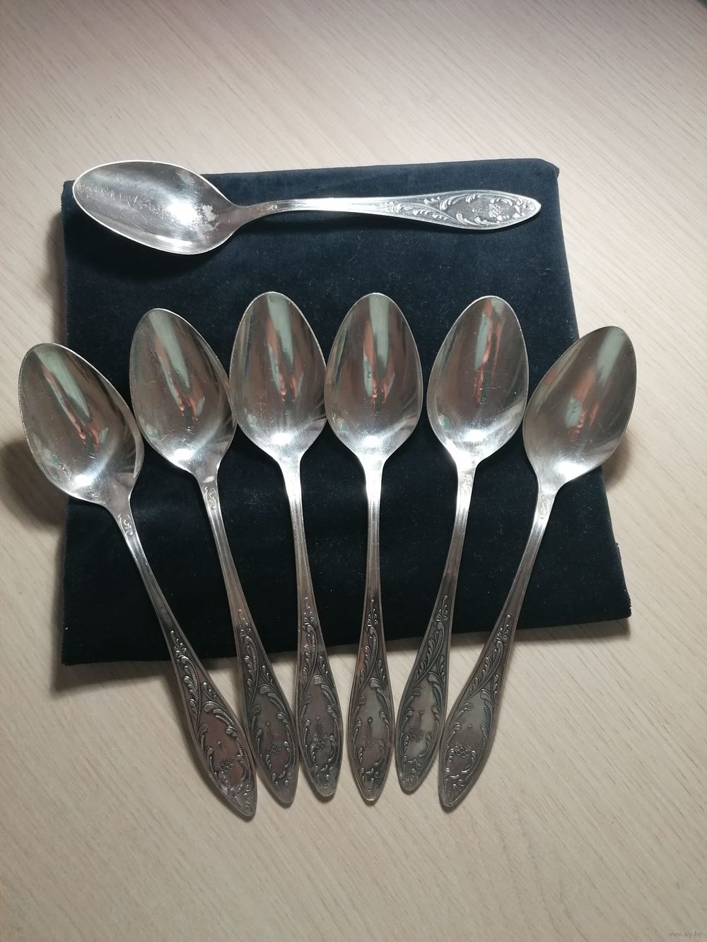 Ложки мельхиоровые в количестве 7 штук производства Кольчуг-Мицар с характерным рисунком "Пламя", дополненные символикой "Олимпиада 80", произведены в 1979 году. Редкая серия для истинных любителей мельхиора.