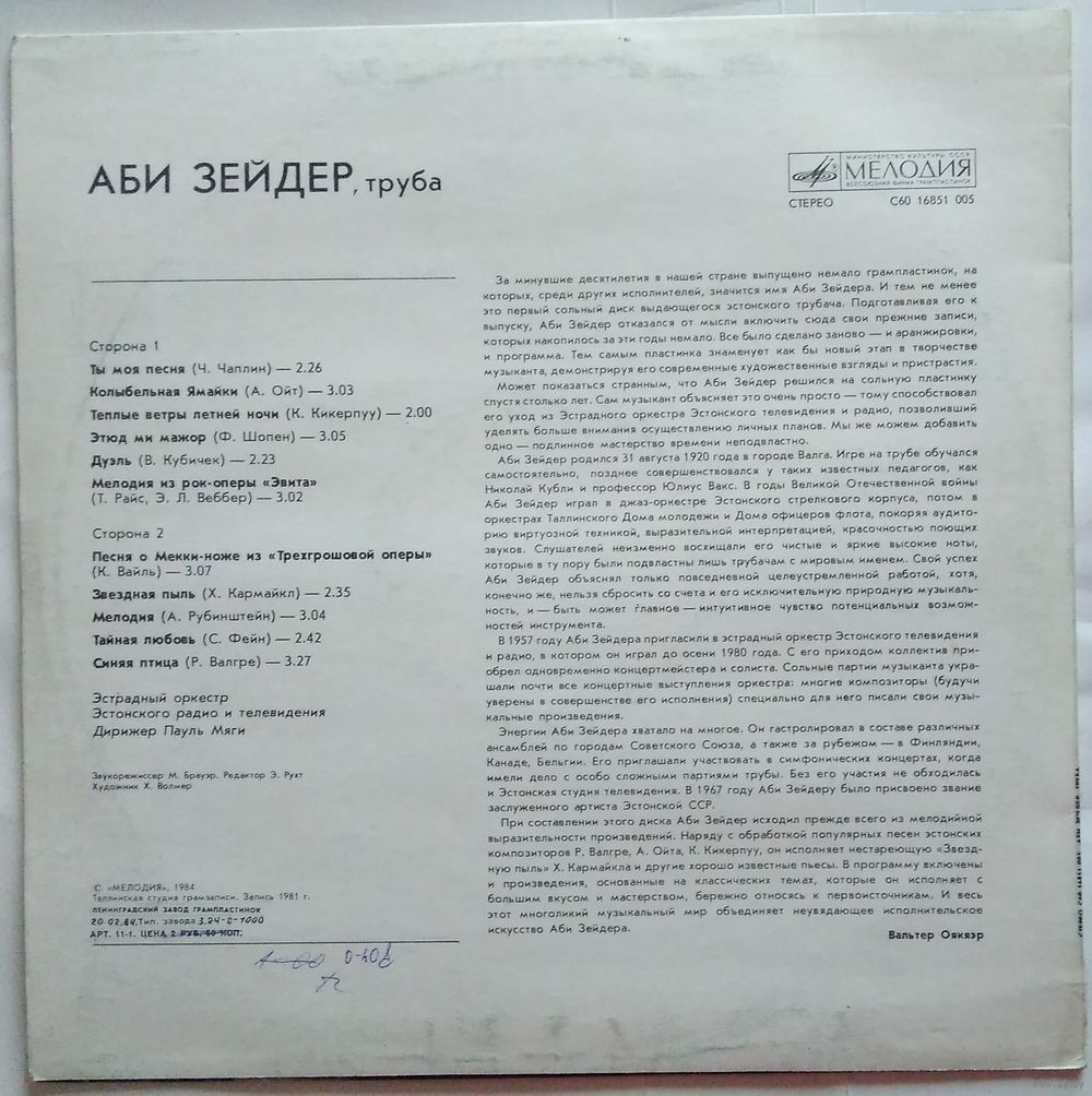 диск выдающегося эстонского трубача. Подготавливая его к выпуску, Аби Зейдер отказался