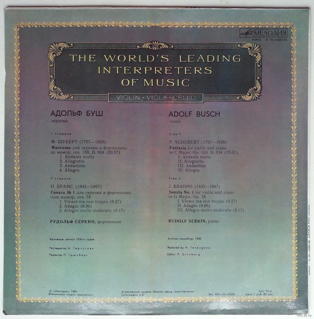 И.БРАМС. Соната № 1 для скрипки и ф-но соль мажор, соч. 78 (1. Vivace ma non troppo. 2. Adagio. 3. Allegro molto moderato)