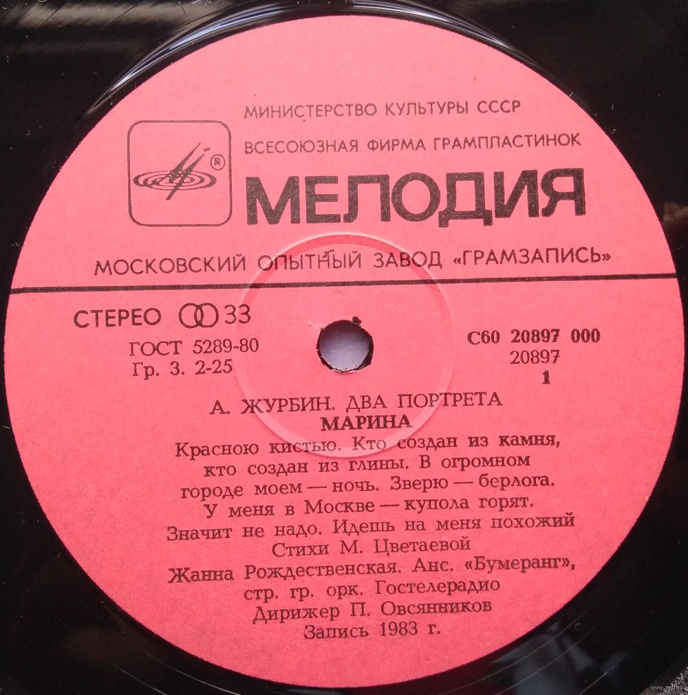 Всесоюзная студия грамзаписи. Запись 1983 г.