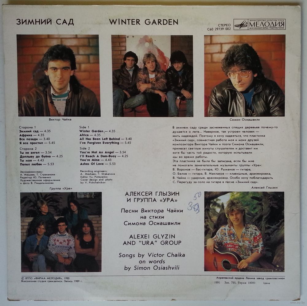 Эта пластинка не была бы записана, если бы мне не помогали замечательные музыканты группы «Ура»: В. Воронов — бас-гитара, Ю. Рыманов — гитара, О. Белов — гитара, В. Маклаков — клавишные, аранжировка, B. Чайка — ударные, аранжировка. Особо хочу поблагодарить C. Перегуду за соло на гитаре в песне «Зимний сад».