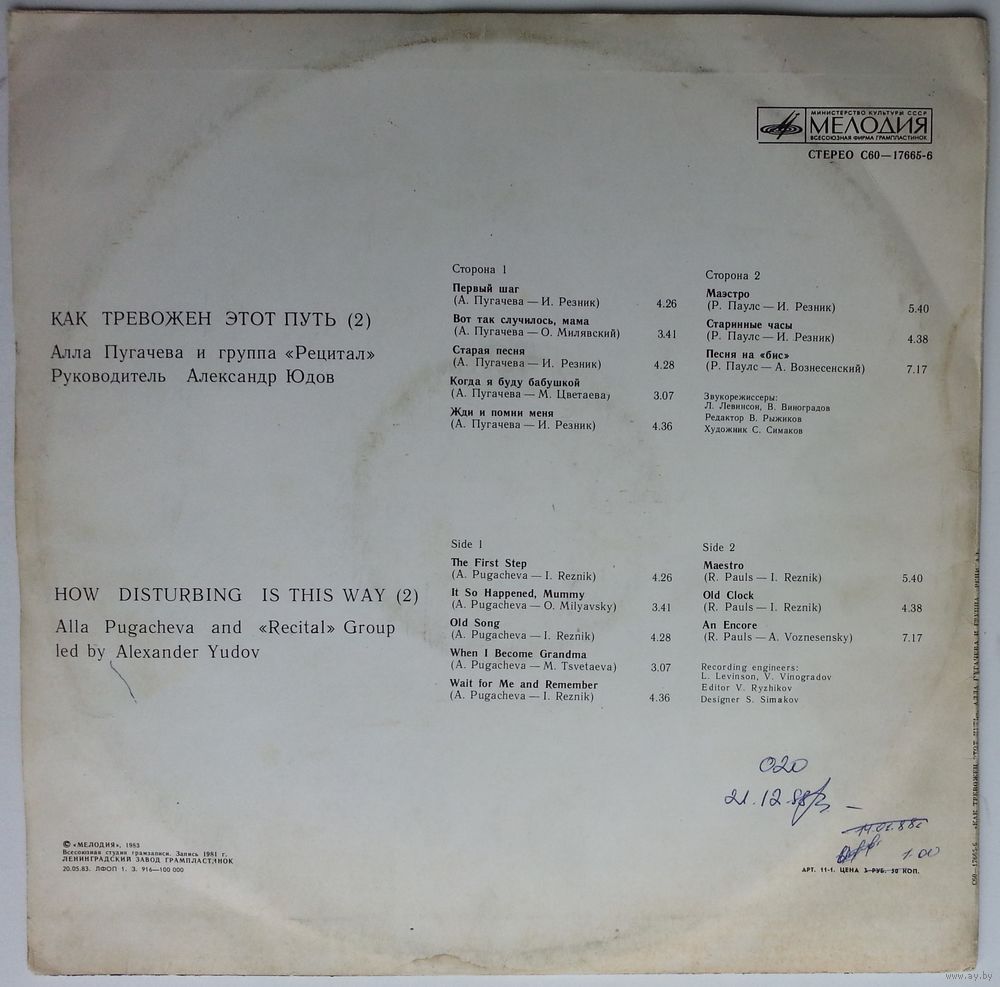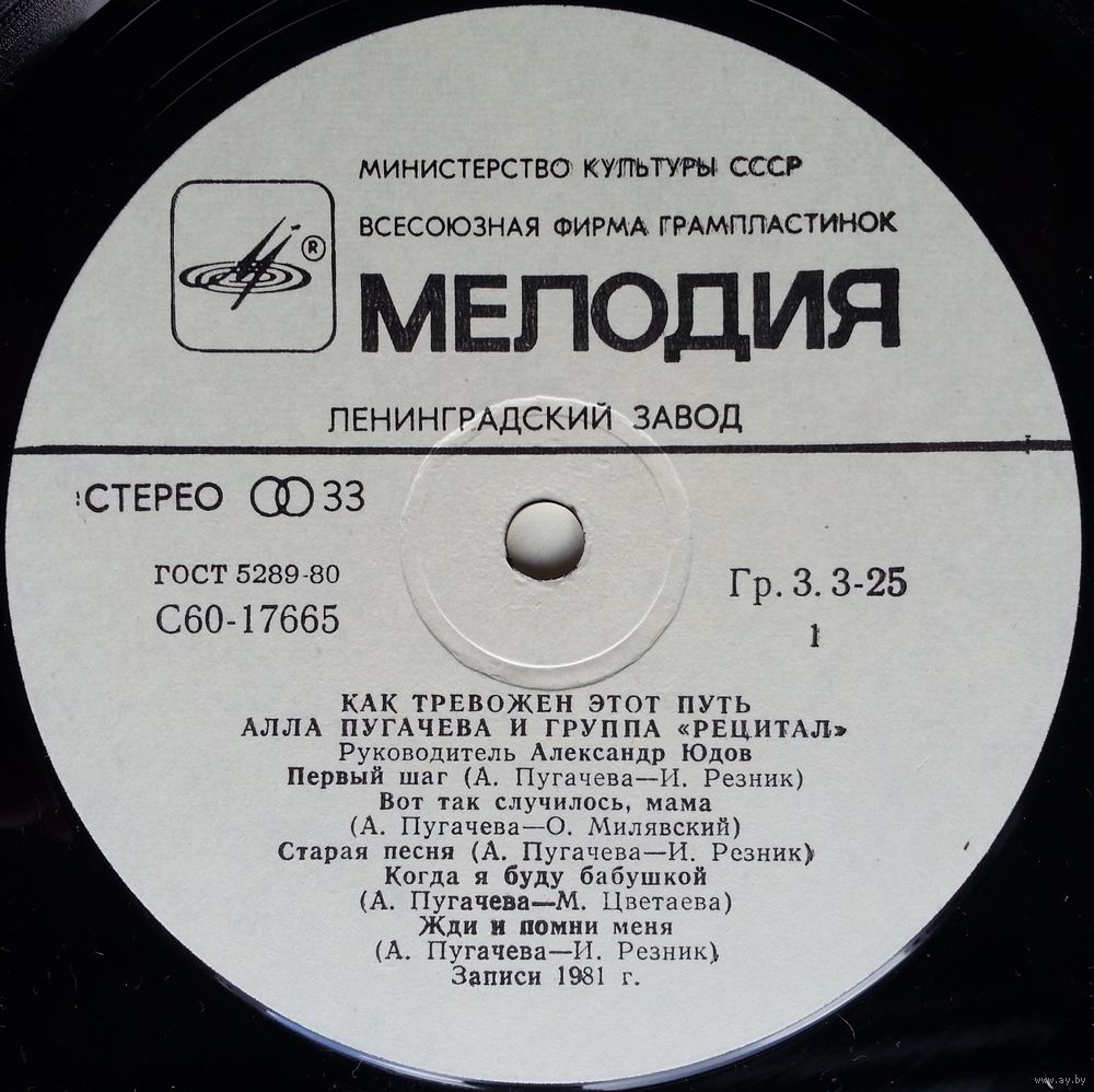Всесоюзная студия грамзаписи. Запись 1981 года.